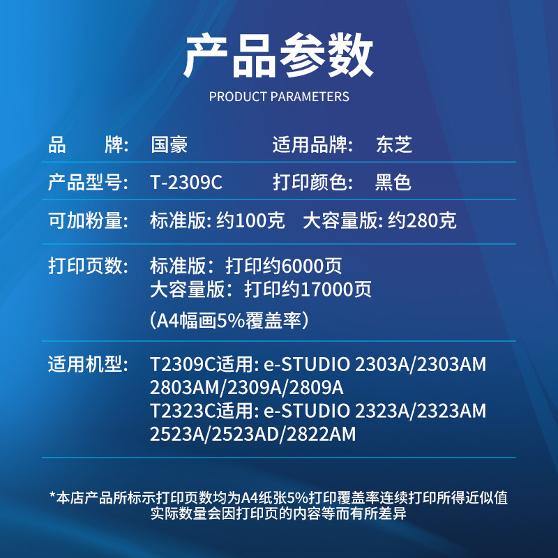 📚 国豪适用东芝2303a粉盒2309a 2303 2803AM 2809a碳粉T2309c硒鼓2323A/AM 2523a/ad 2822AM打印机T2323cs墨盒