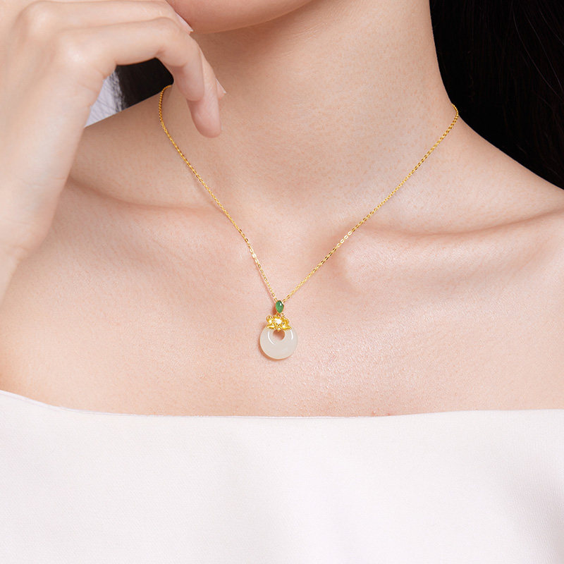 📚 六桂福珠宝和田玉吊坠项链女纯银锁骨套链礼物生日礼物
