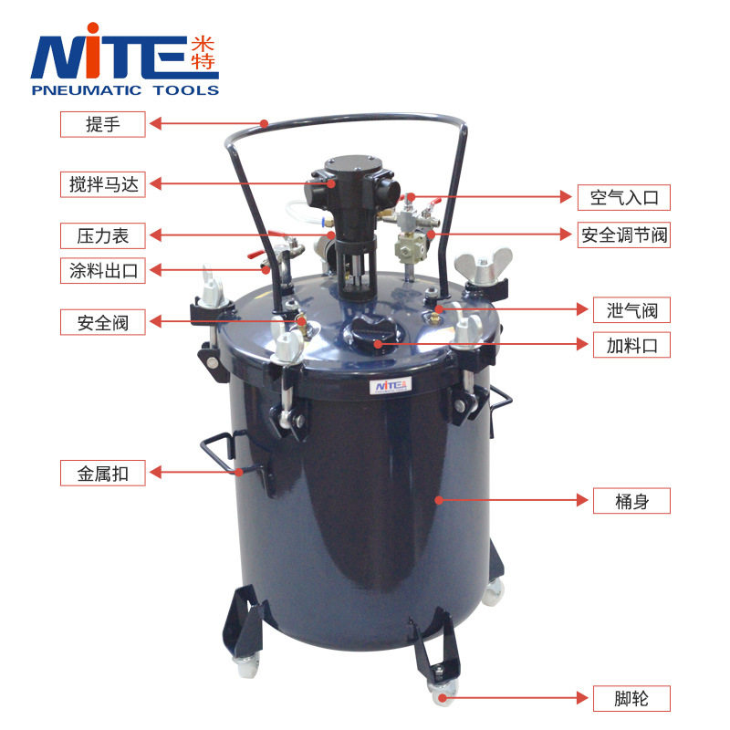 📚 NITE 自动压力桶10L/30L/40L/60L自动搅拌压力桶 喷涂油漆加压罐