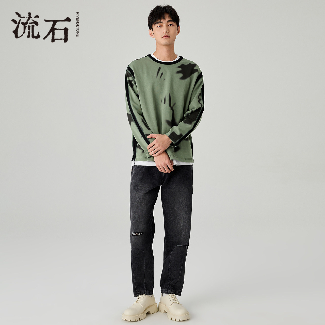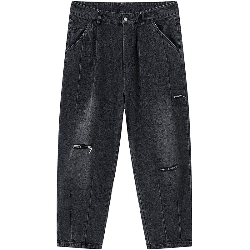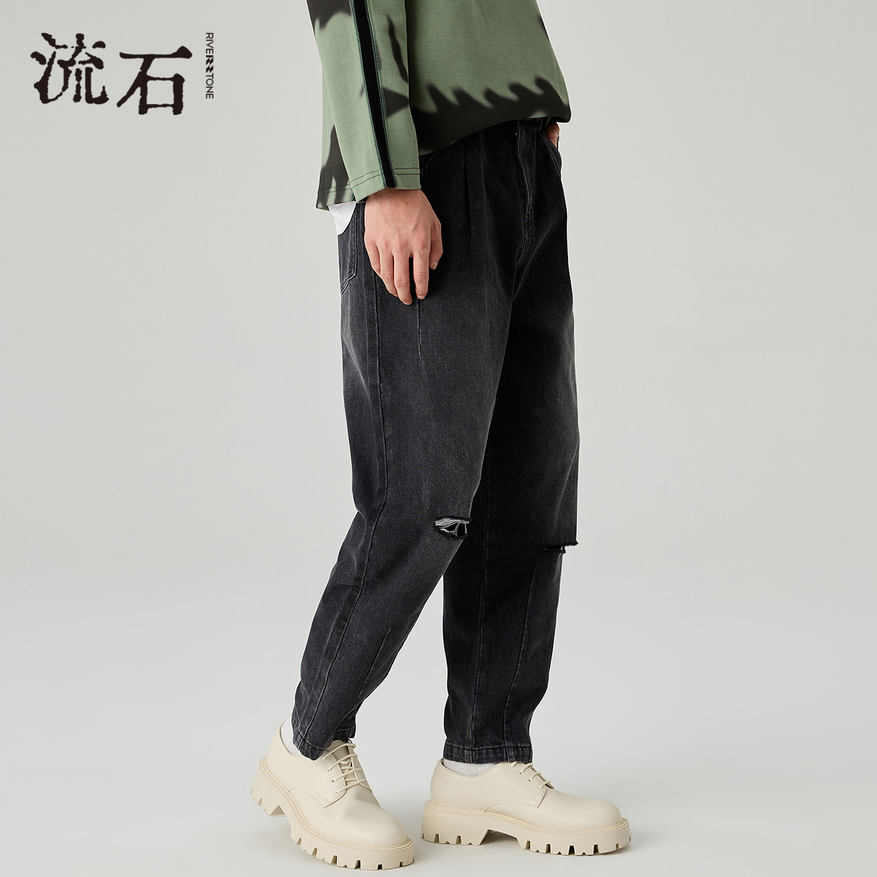 📚 流石男装时尚个性破洞牛仔裤2026年春季新款男士宽松九分裤子潮