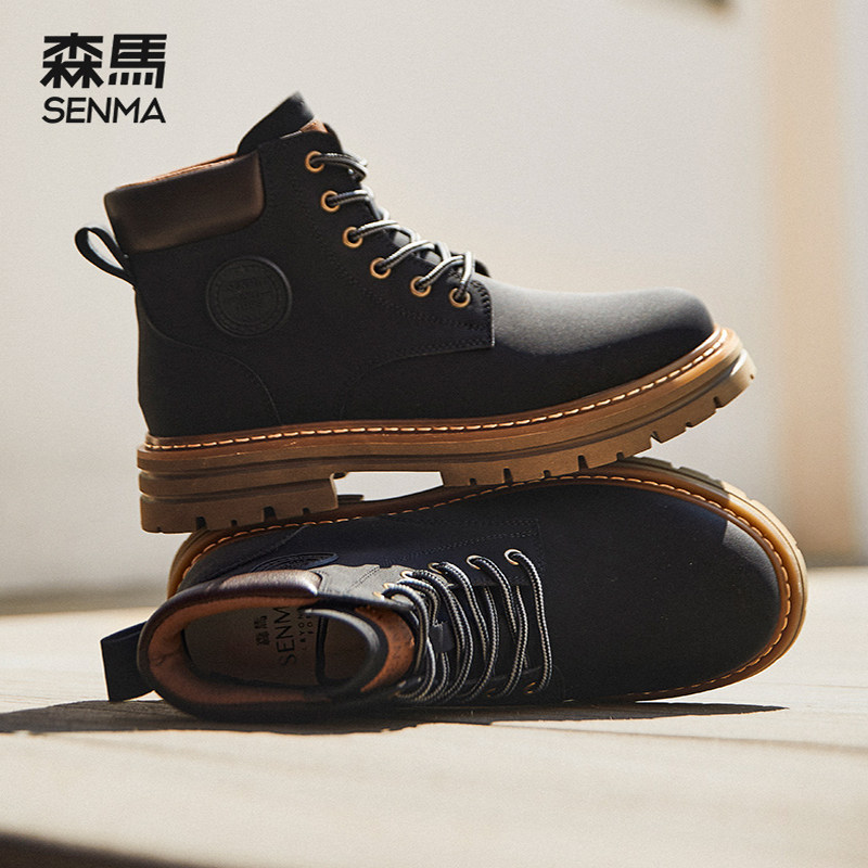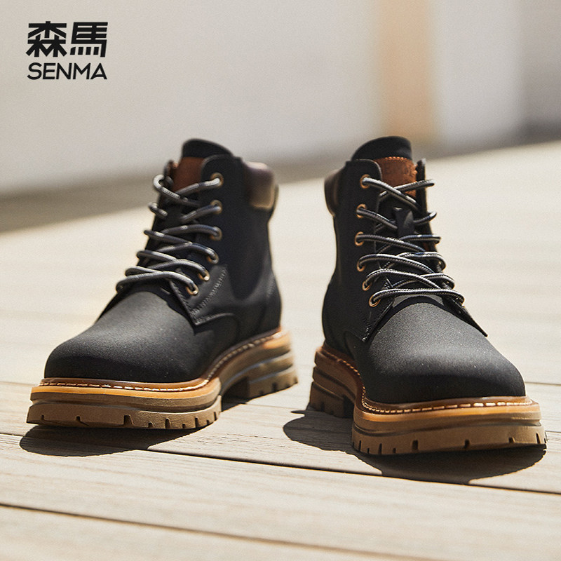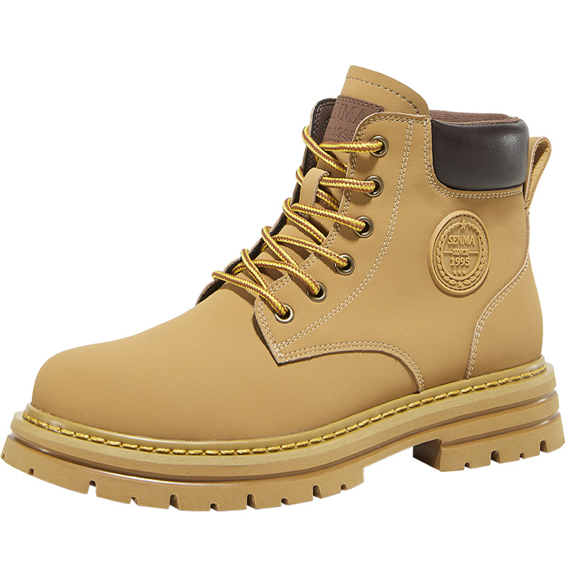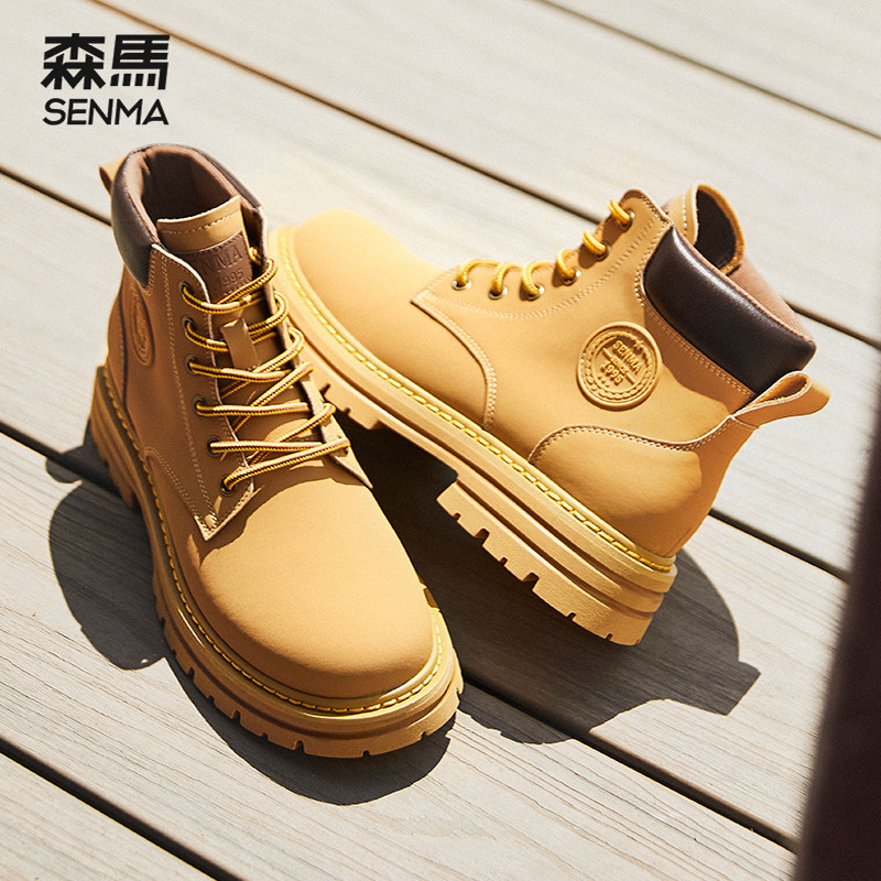 📚 森马马丁靴男高帮皮面英伦风大黄靴秋冬加绒2025年新款短靴工装靴