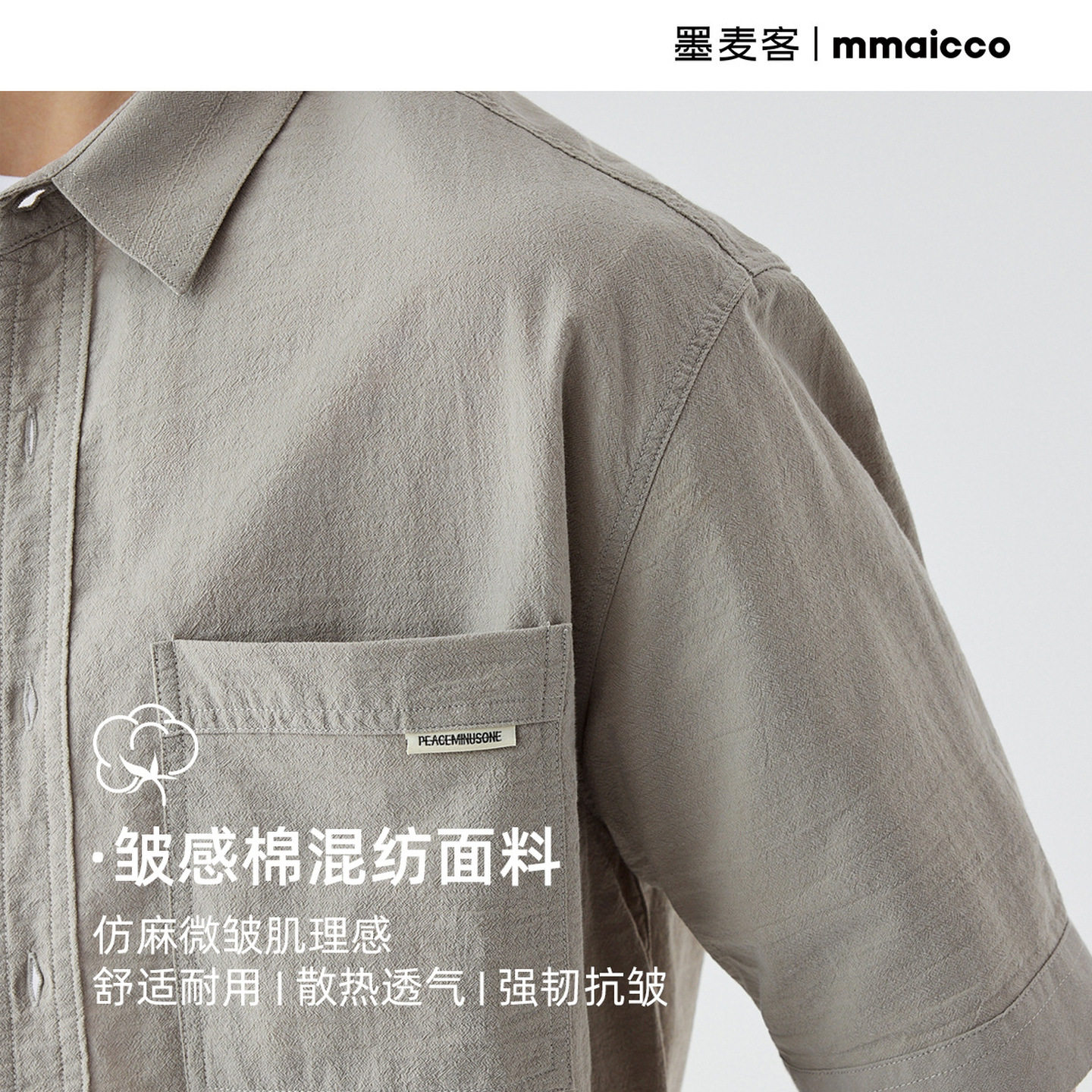 📚 墨麦客仿麻肌理感男士休闲衬衫2025夏季新款复古宽松五分袖短袖男