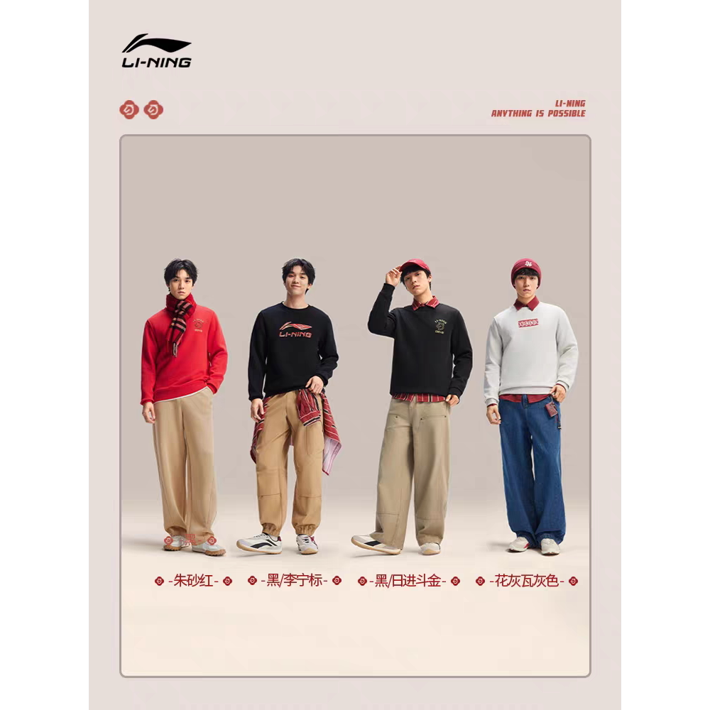 📚 李宁男女同款2026春季日进斗金新年无帽套头衫运动卫衣AWDW281