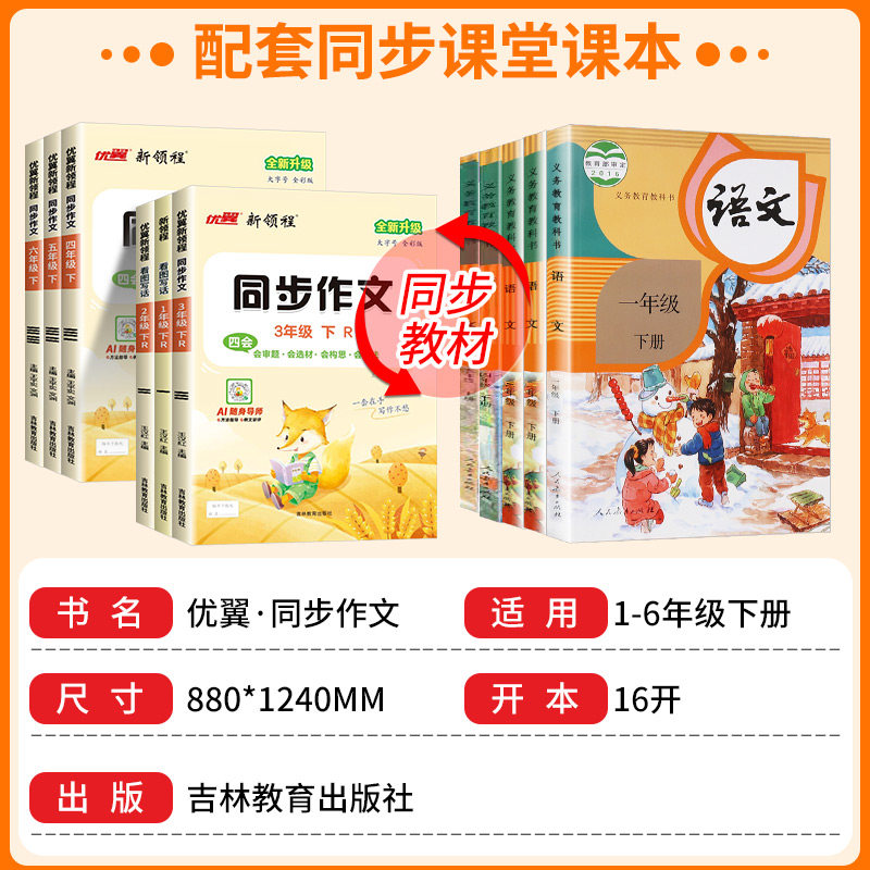 📚 新领程同步作文三年级四年级五年级六年级一二年级上册下册人教版小学教材看图写话阅读理解写作素材积累大全作文范文优美句子积累