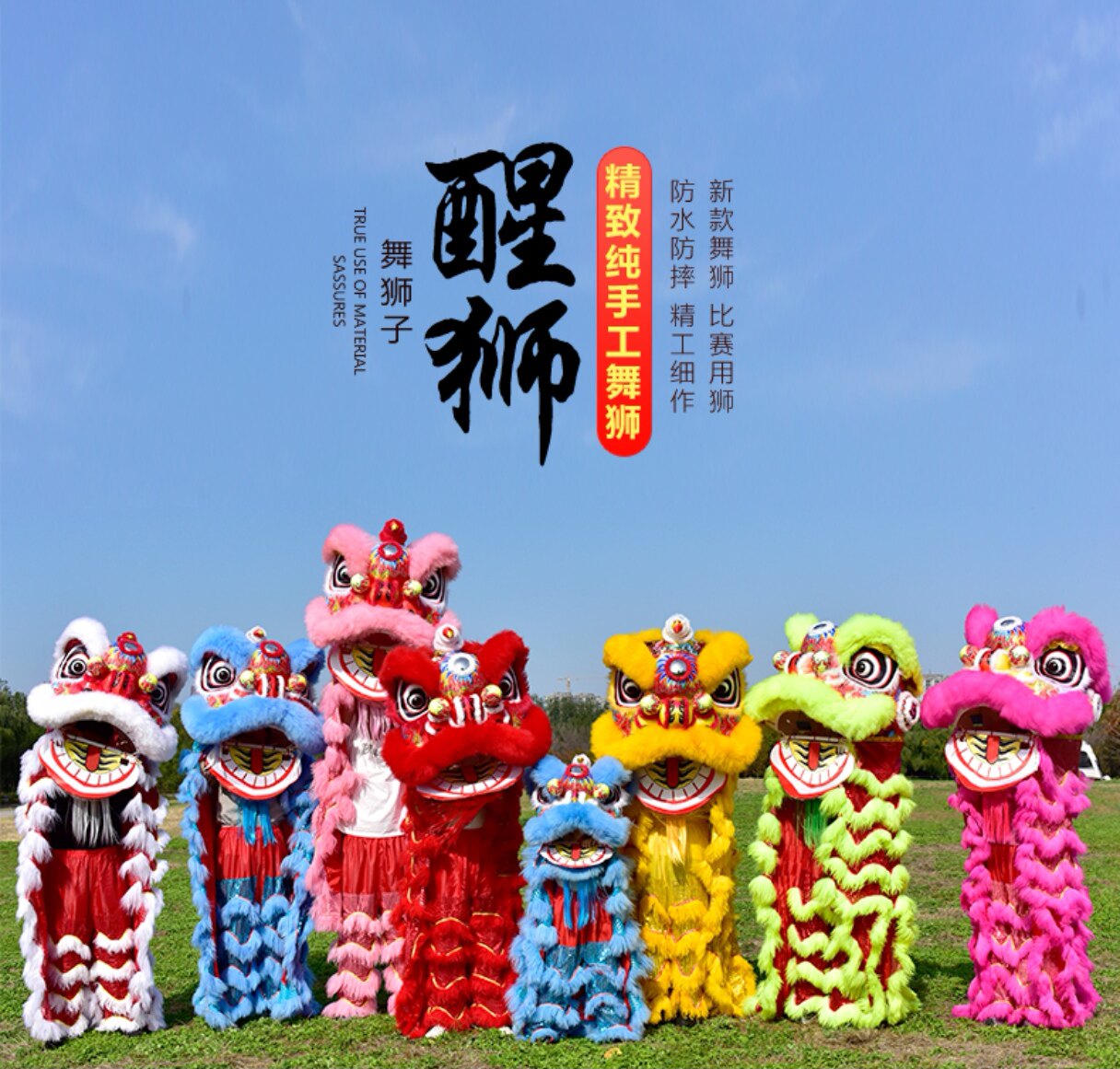📚 单人舞狮道具成人儿童全套小狮子羊毛南狮醒狮泡沫狮头表演带披风