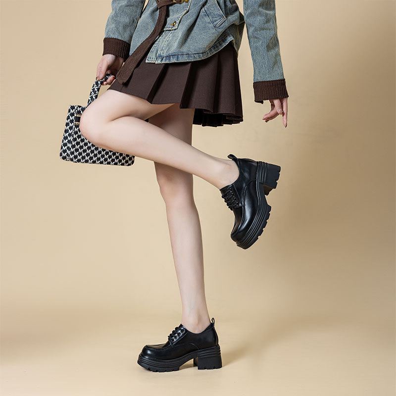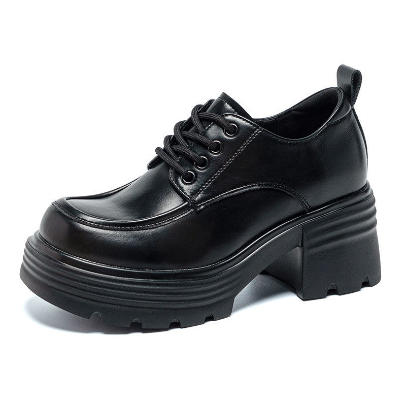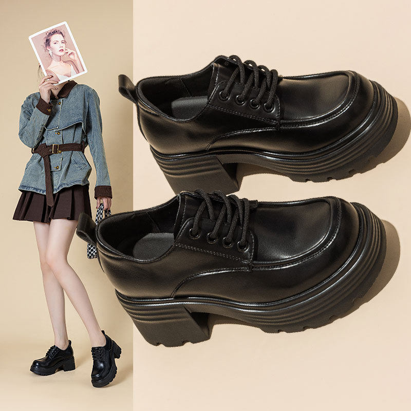 📚 2026新款小皮鞋春季厚底高跟英伦风黑色系带百搭乐福jk鞋子女