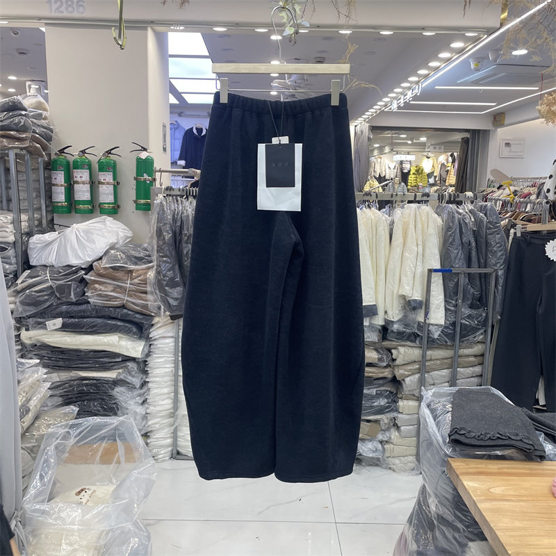 📚 3R3正品冬新款韩系高腰显瘦宽松休闲加绒加厚弯刀阔腿裤女9380-1