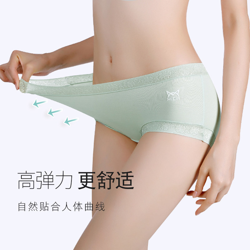 📚 人莫代尔内裤女纯棉档抗菌中腰无痕透气女士冰丝大码三角短裤头
