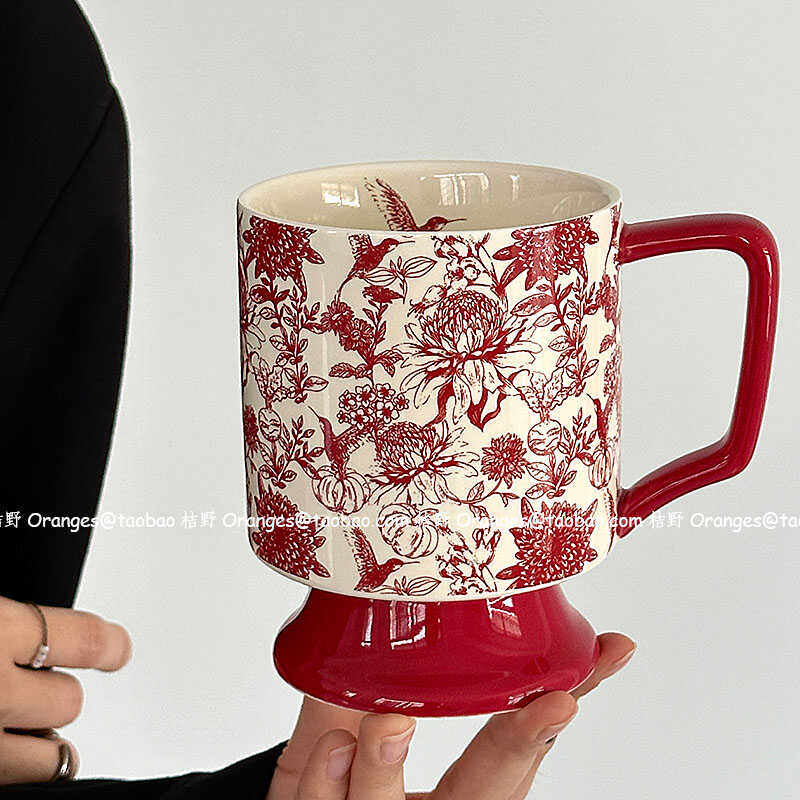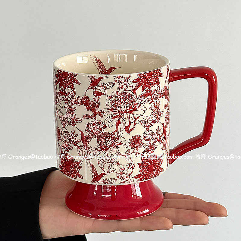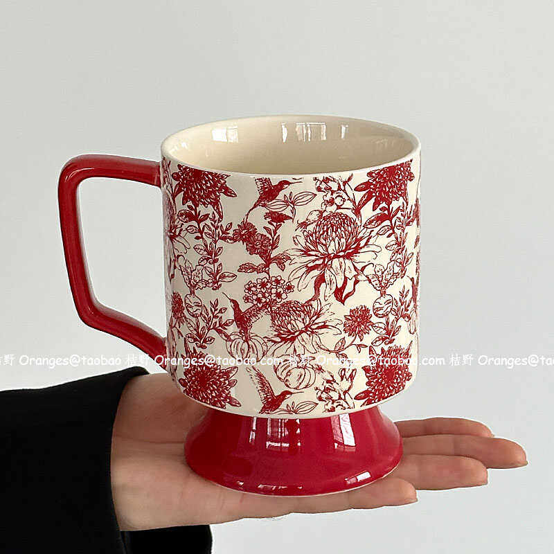 📚 Oranges限定复古红雀鸟马克杯大容量水杯中古风陶瓷杯子小众礼物
