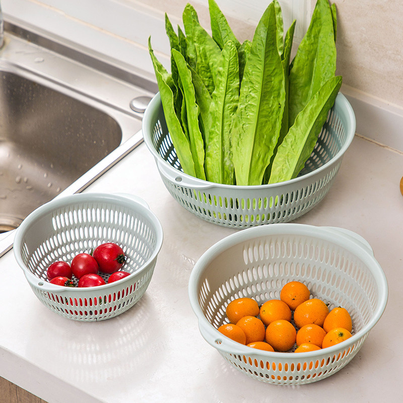📚 洗菜篮家用厨房镂空3件套沥水篮大中小号塑料洗菜盆水果收纳篮子