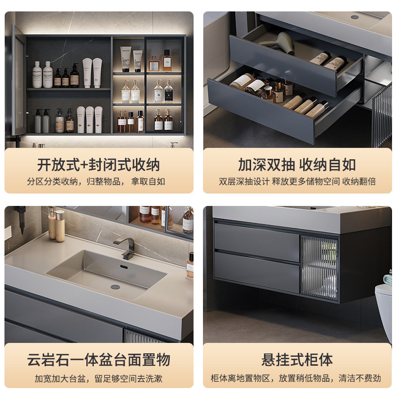 📚 云岩石一体盆轻奢浴室柜组合卫生间洗手池洗脸盆柜洗漱台新款简约