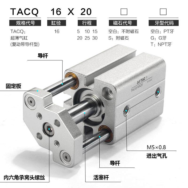 📚 亚德客薄型气缸三轴三杆带导杆带磁TACQ16X10X12X15X20X25X32X40S