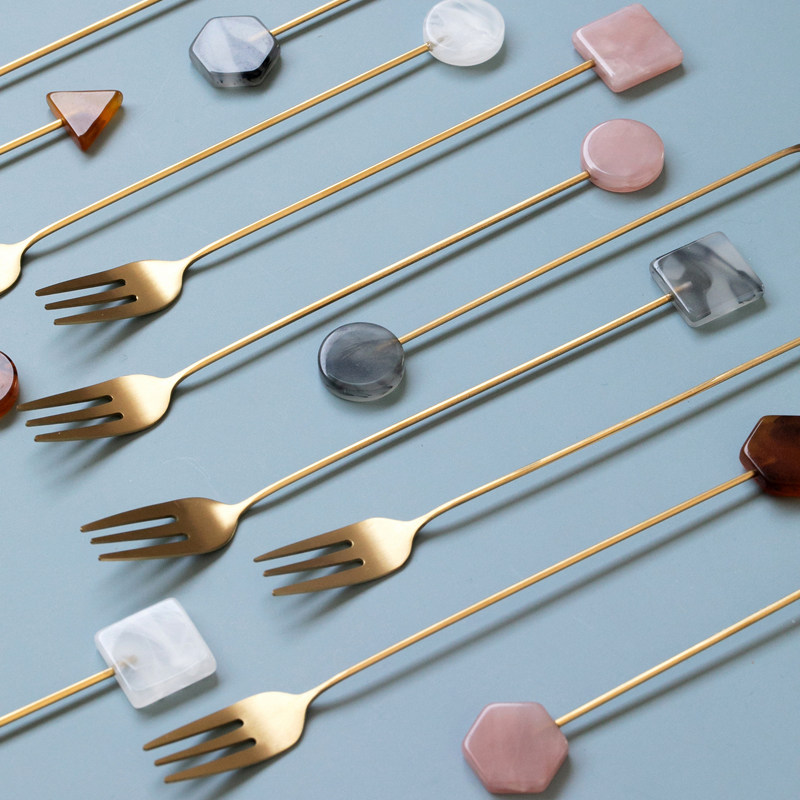 📚 不锈钢水果叉北欧ins风轻奢可爱创意精致家用点心蛋糕甜品小叉子
