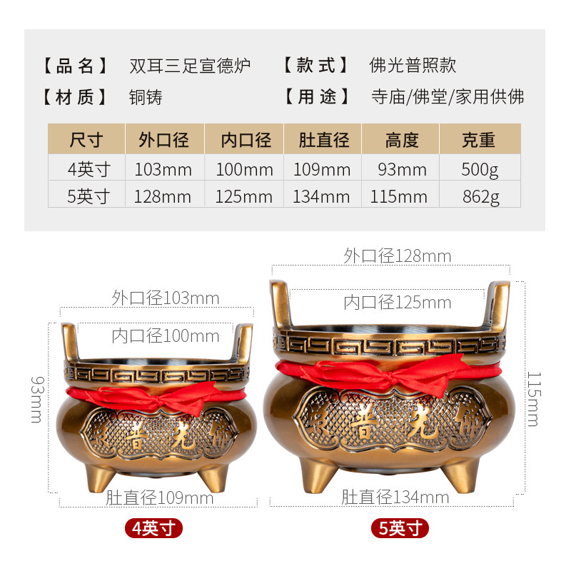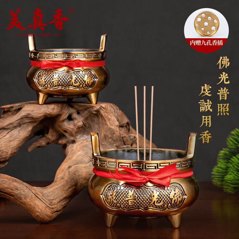 📚 美真香铜香炉上香线香炉香插香座大号檀香供奉礼佛熏香炉家用室内