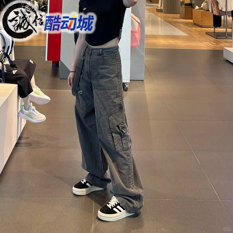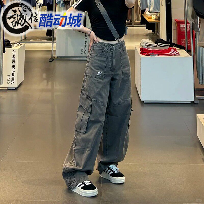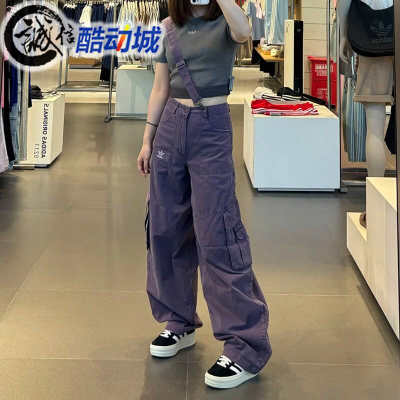 📚 阿迪达斯三叶草女子多口袋背带宽松工装牛仔运动裤 KH1179 KH1180