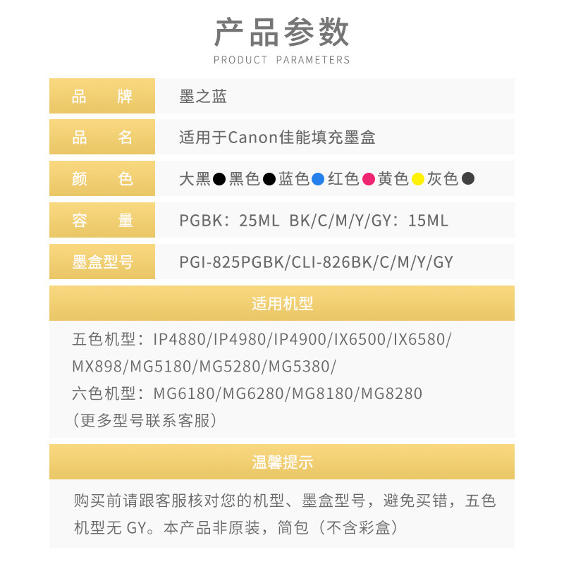 📚 适用佳能IX6580 6500MG6180 6280 8180 5180 5380填充墨盒825 826