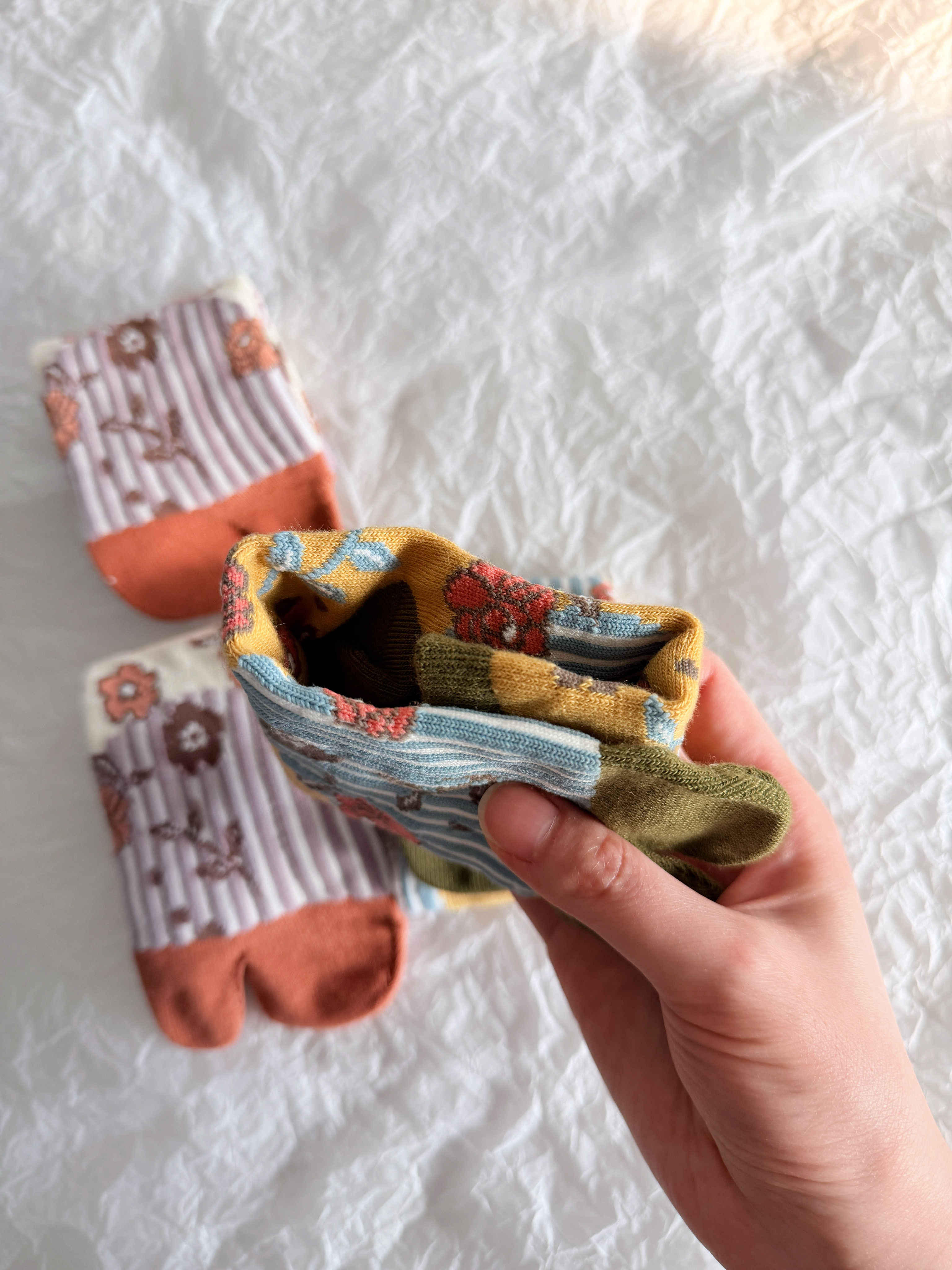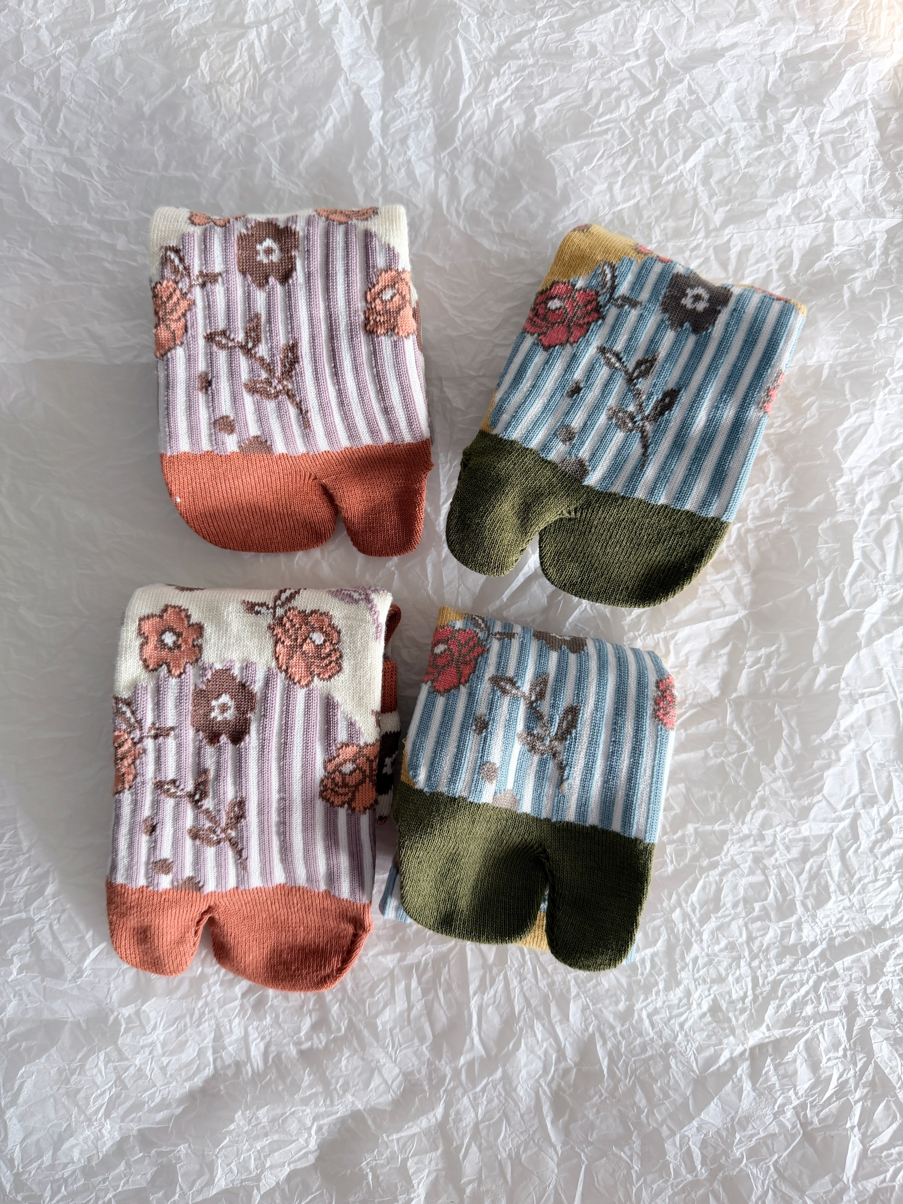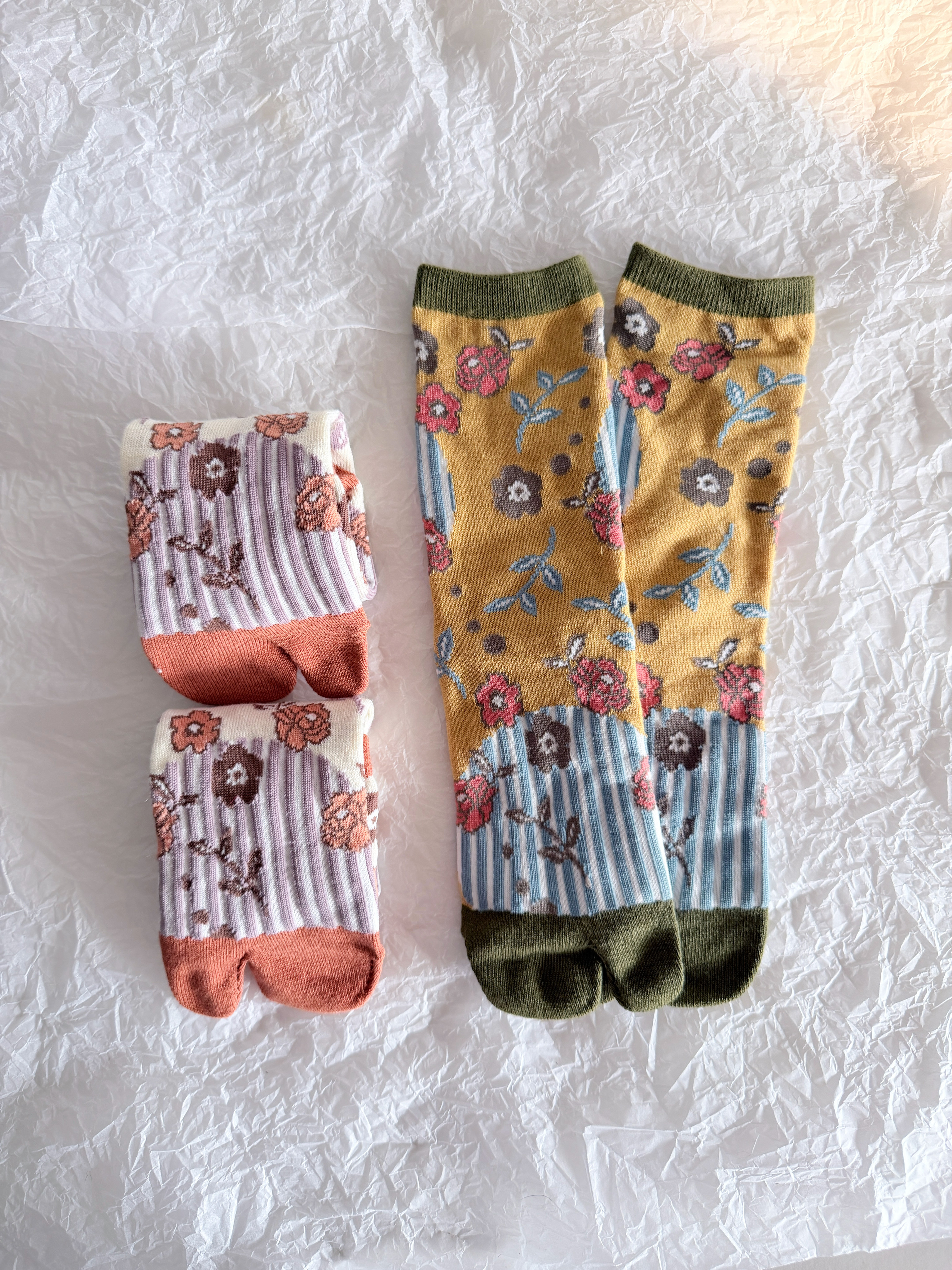 📚 39包邮/稀有和风日单!60%纯棉日式花朵印花分趾两趾中筒袜子