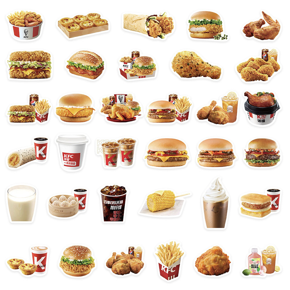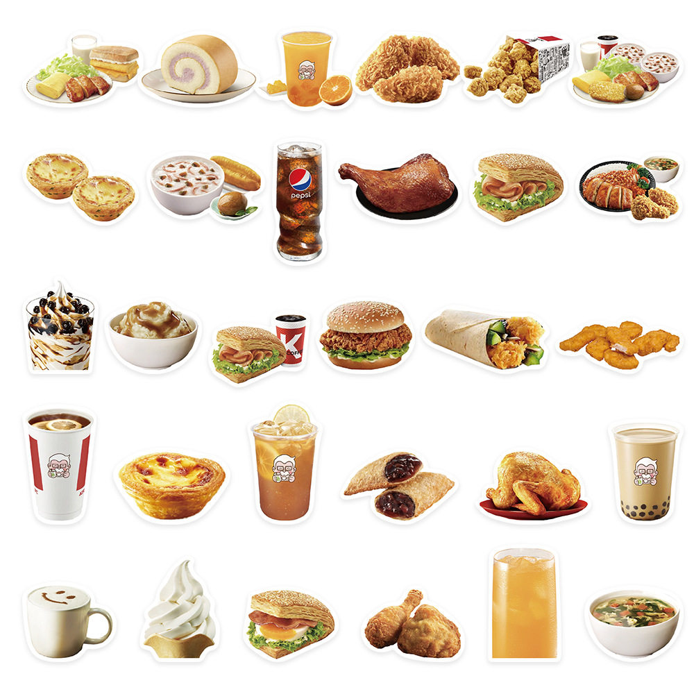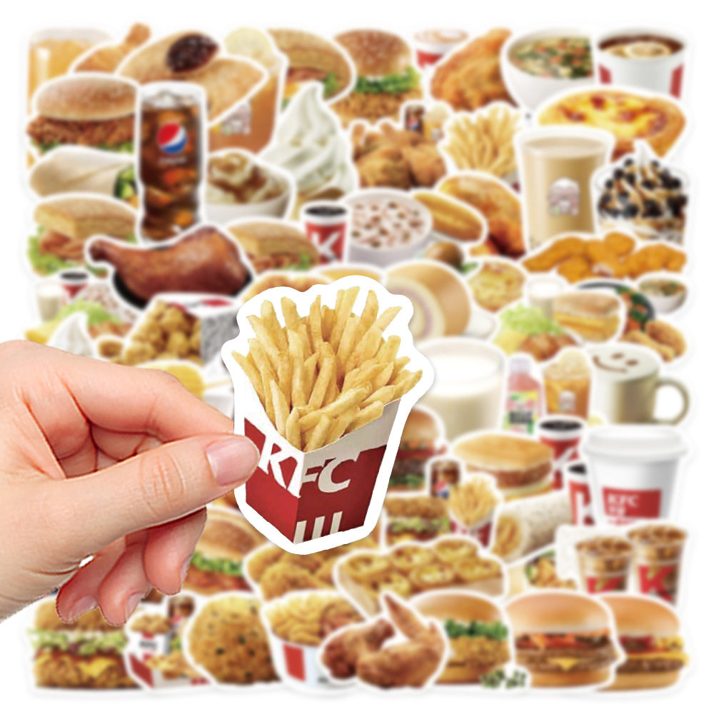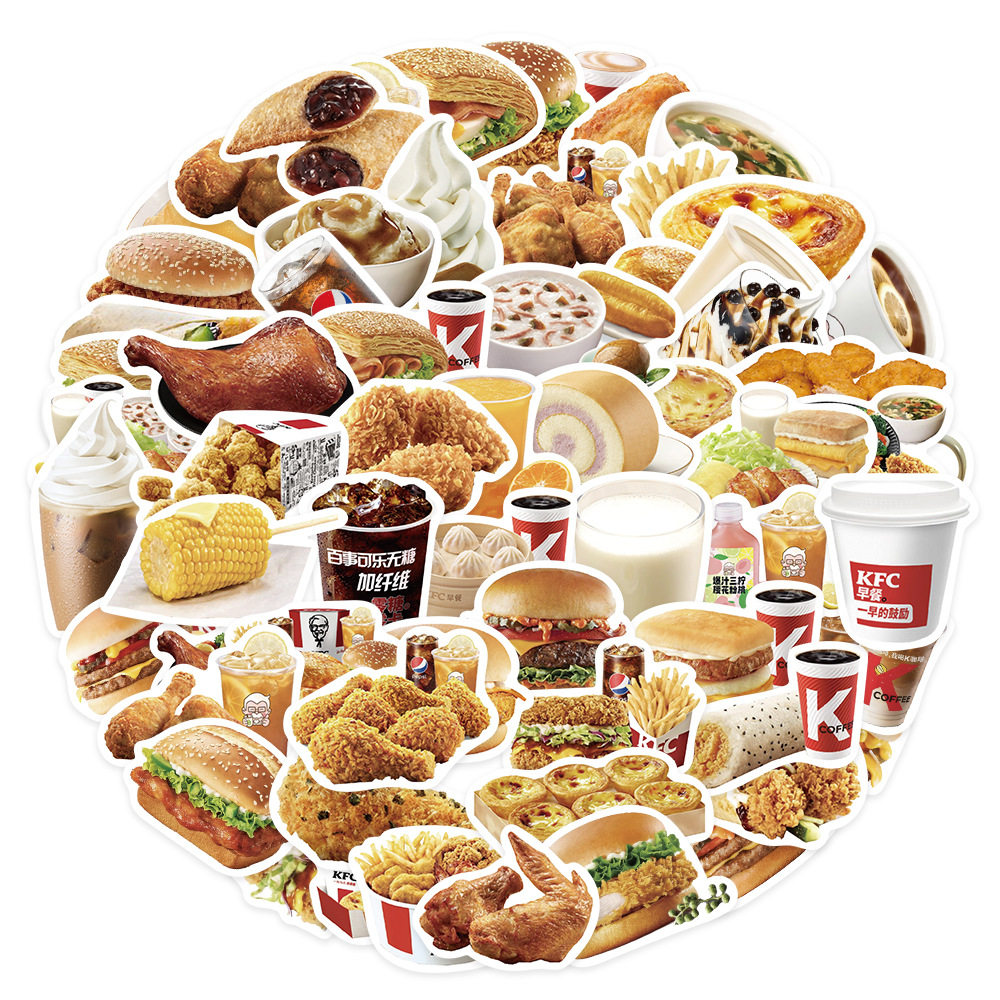 📚 64张kfc食物贴纸汉堡薯条行李箱笔记本电脑手机壳装饰防水贴画