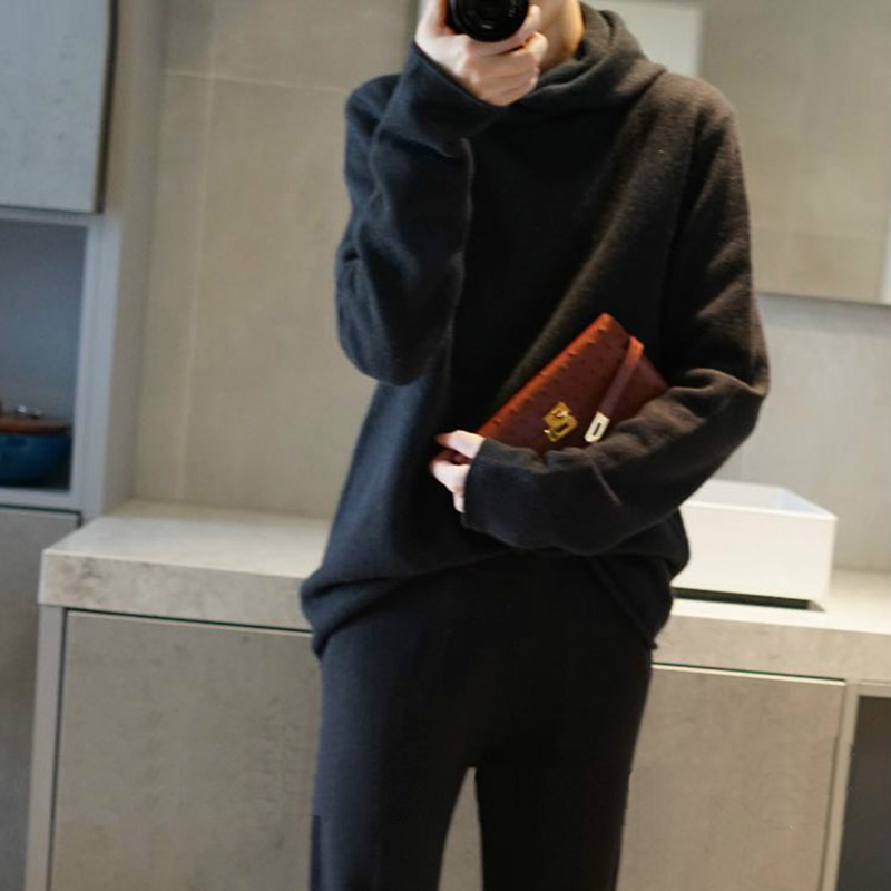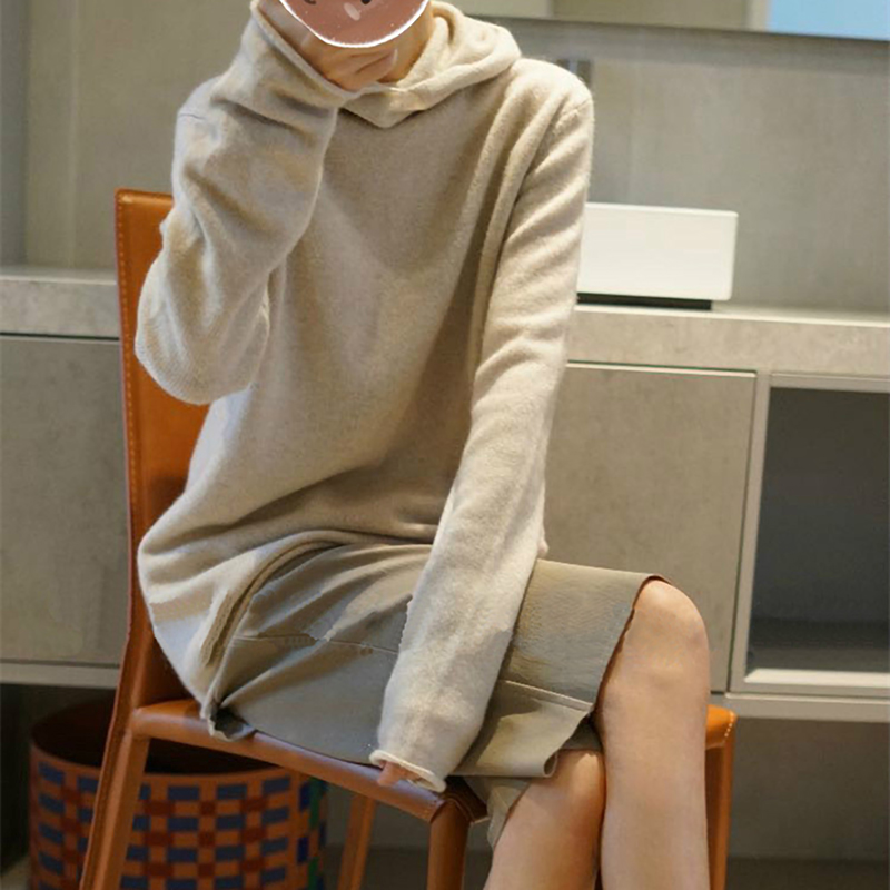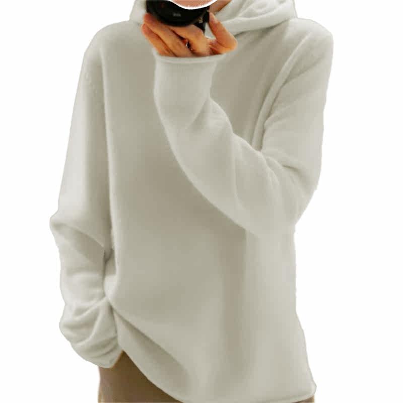 📚 品相好美~小领口卷边羊绒帽衫纯羊绒毛衣宽松小堆领连帽羊绒衫