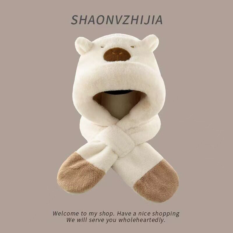 📚 儿童帽子围巾一体秋冬季男女童防风保暖围脖女加厚骑行护耳帽防寒
