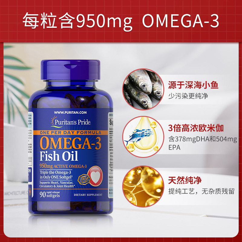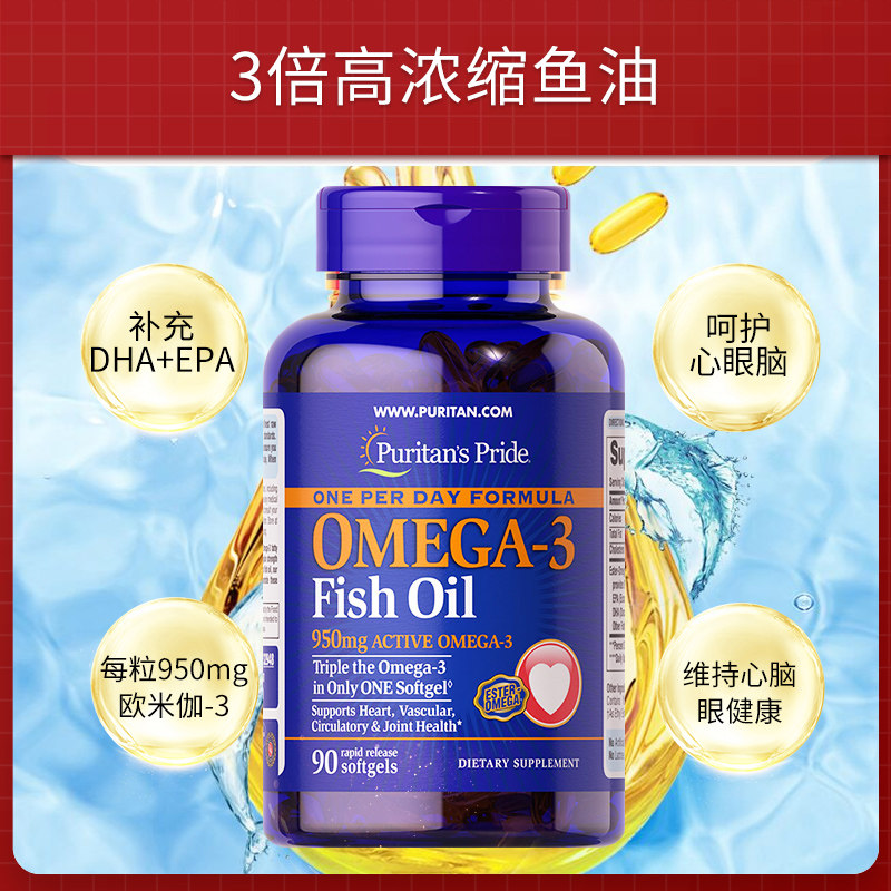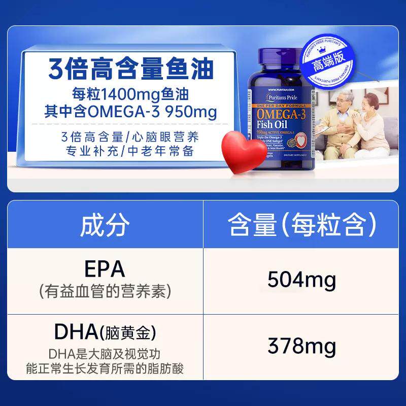 📚 普丽普莱深海鱼油软胶囊3倍高浓缩中老年鱼油1400mg90粒*2瓶