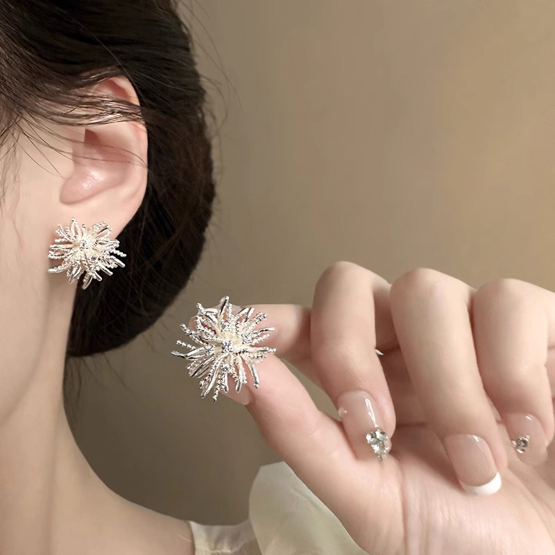 📚 夸张蒲公英耳钉女纯银轻奢高级感复古耳环2026年新款爆款耳夹耳饰