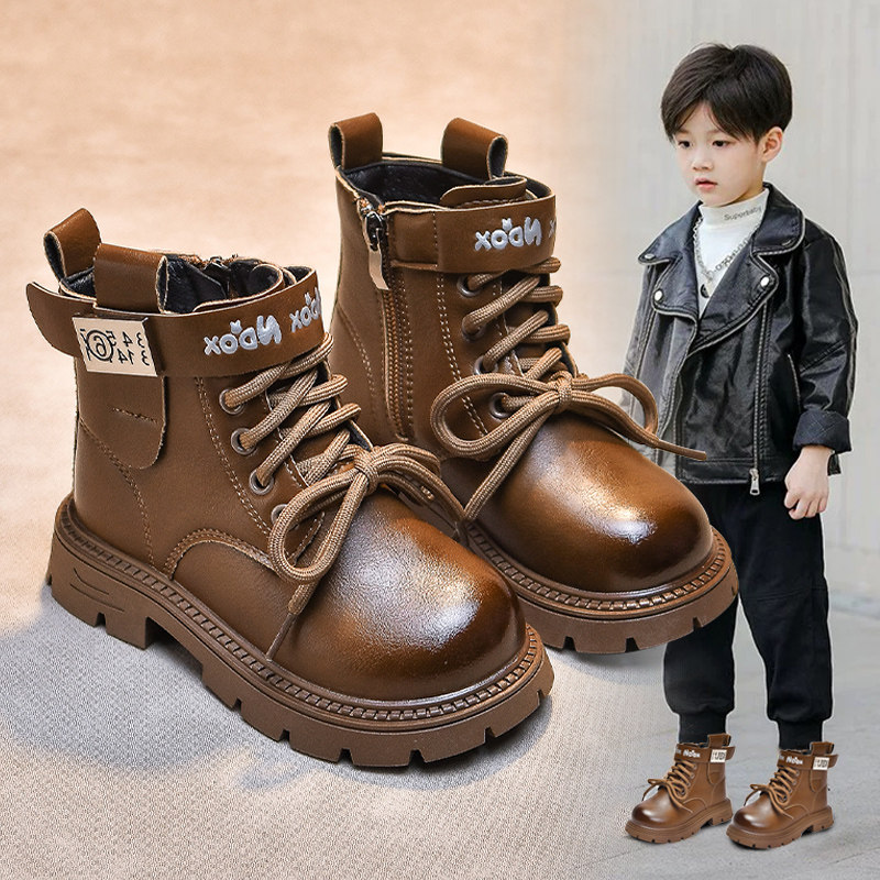 📚 男童帅气马丁靴加绒2024新款男孩儿童靴K子英伦风秋冬鞋子皮鞋短