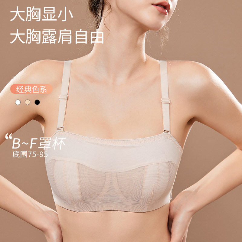 📚 ILUC法式EF杯兔耳朵蕾丝文胸软圈超薄大胸显小内衣聚拢防走光抹胸