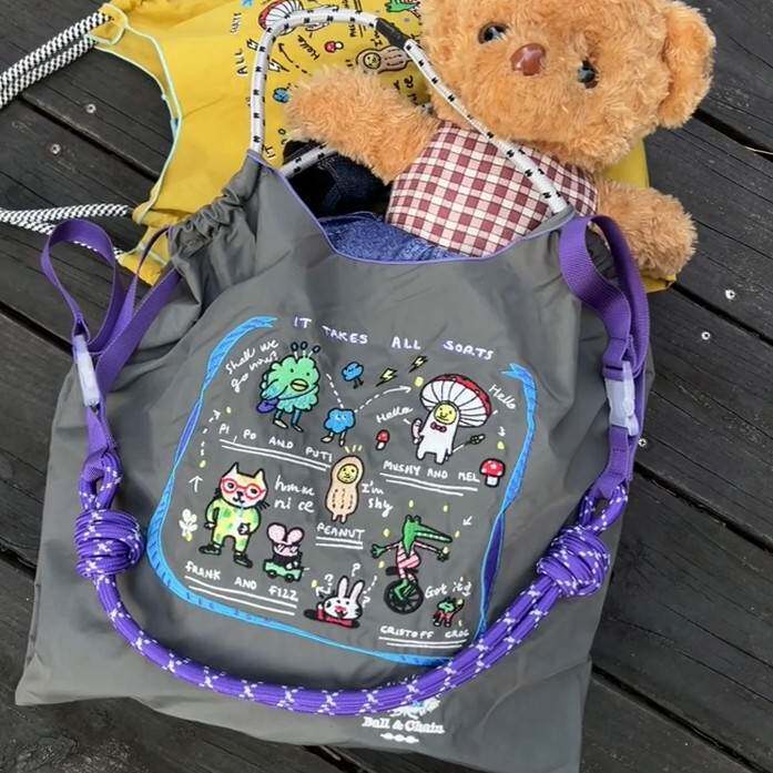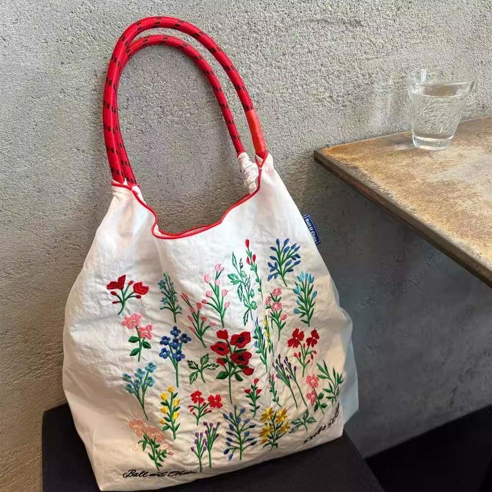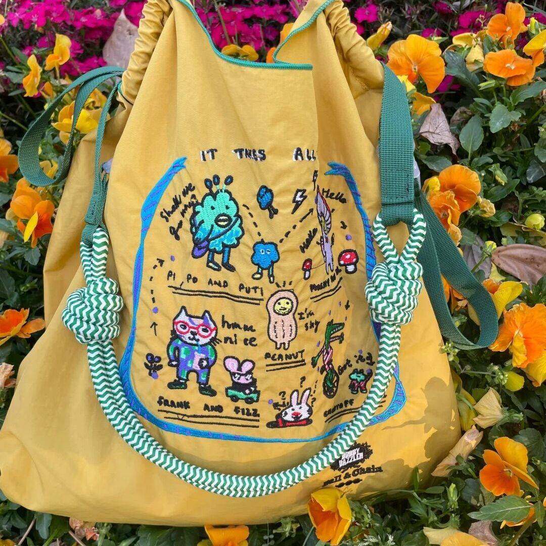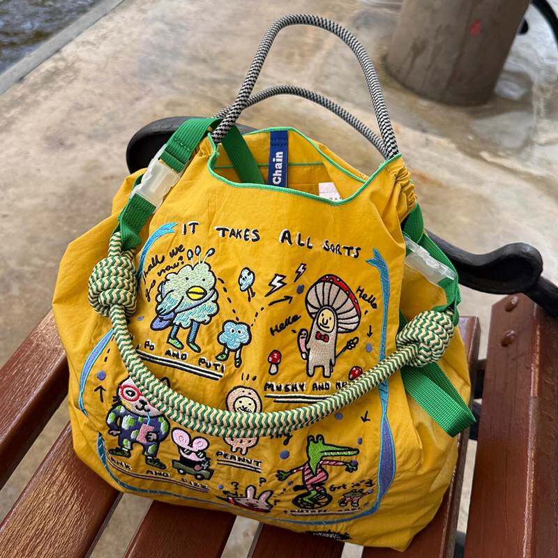 📚 日本代购ballchain刺绣黄色虚拟卡通购物袋帆布包单肩旅游通勤包