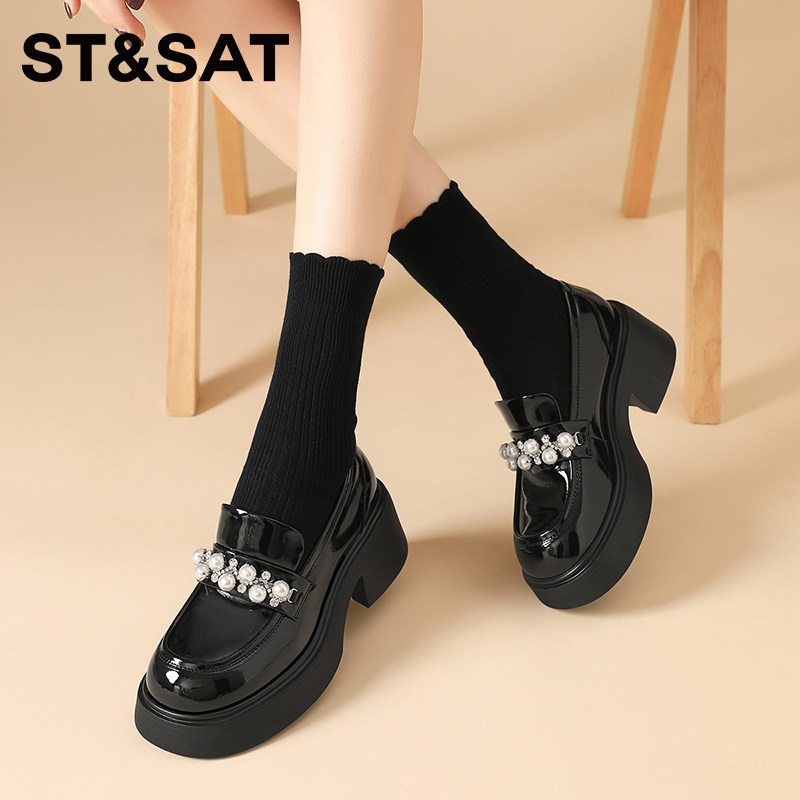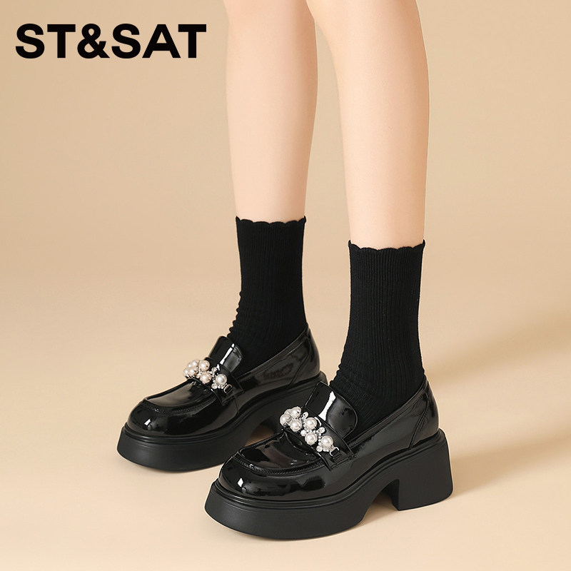 📚 星期六厚底乐福鞋女春季新款女鞋英伦风小皮鞋黑色百搭单鞋子