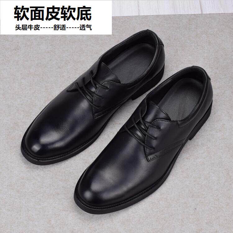 📚 软皮外贸男鞋商务正装皮鞋男真皮婚鞋系带圆头软底头层牛皮大码鞋
