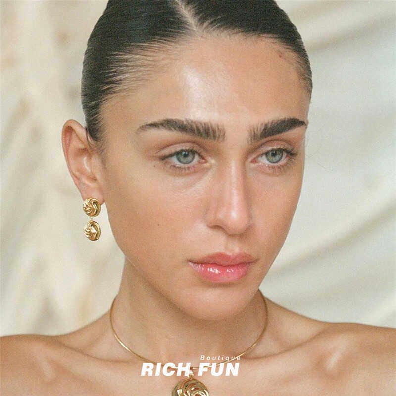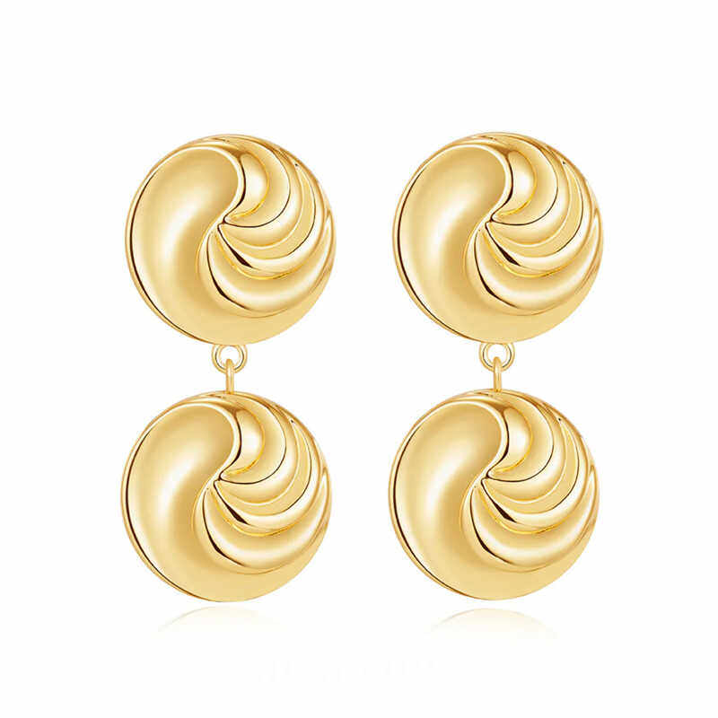 📚 美国小众LUV AJ复古优雅法式旋涡吊坠金盘子气质通勤百搭高级耳饰