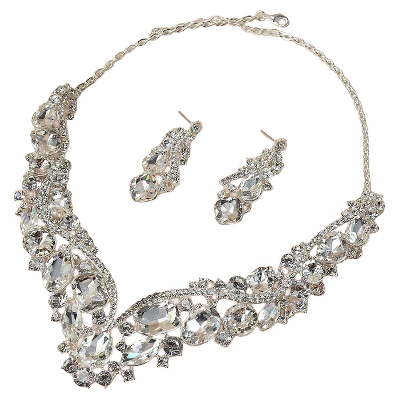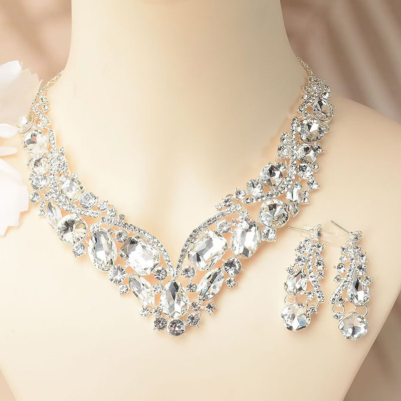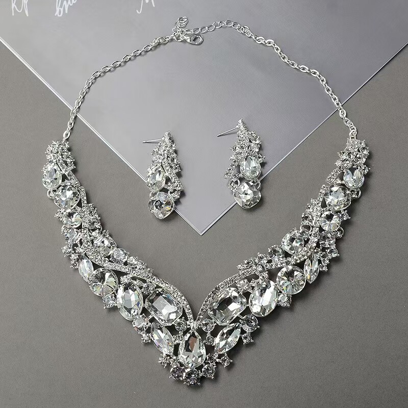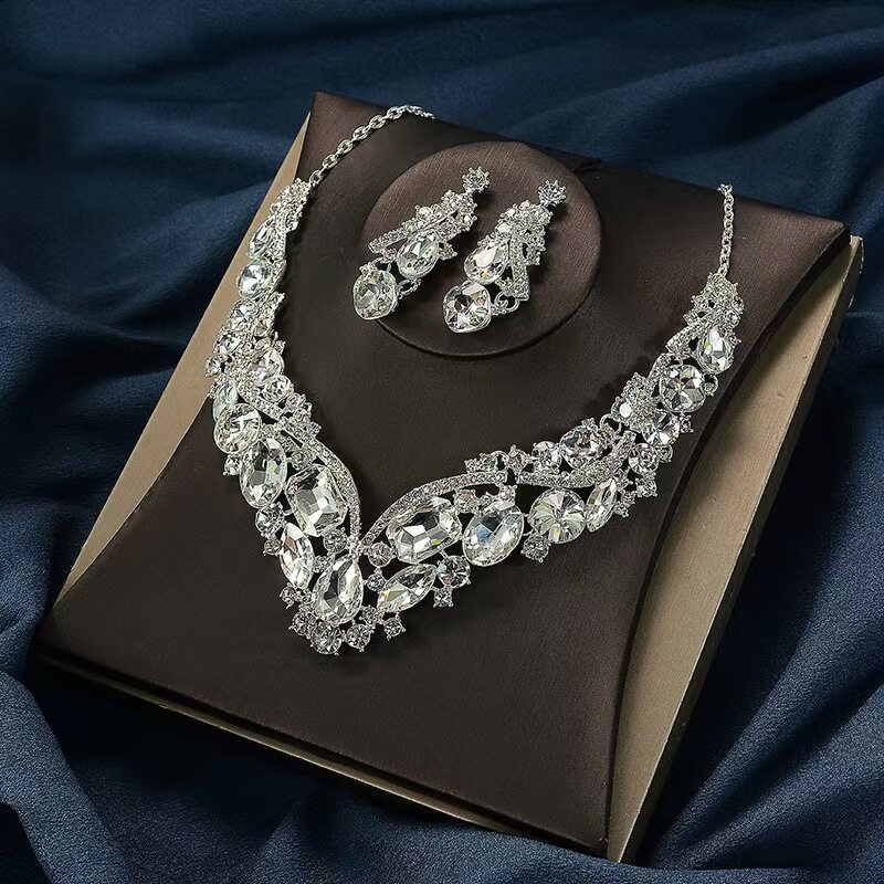 📚 奢华闪亮大宝石水钻高级感新娘项链耳环首饰套链女宴会礼服装饰品