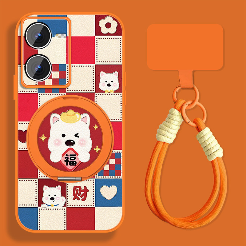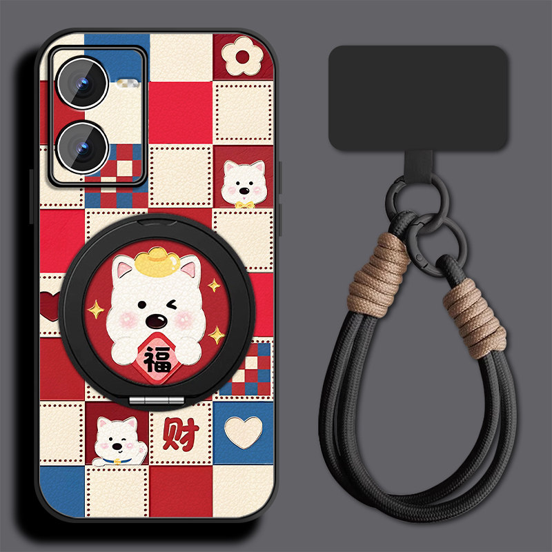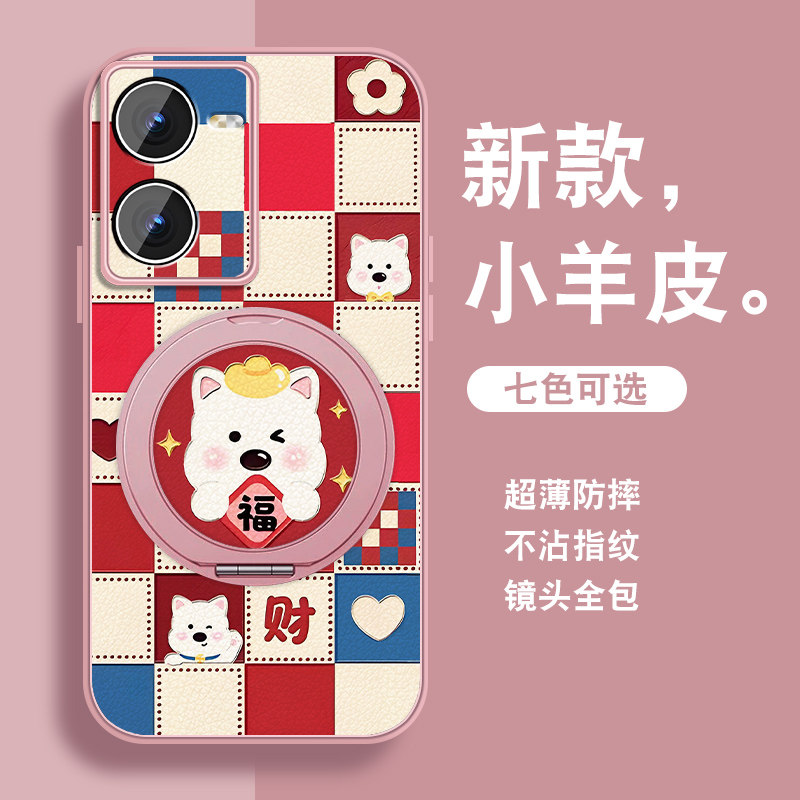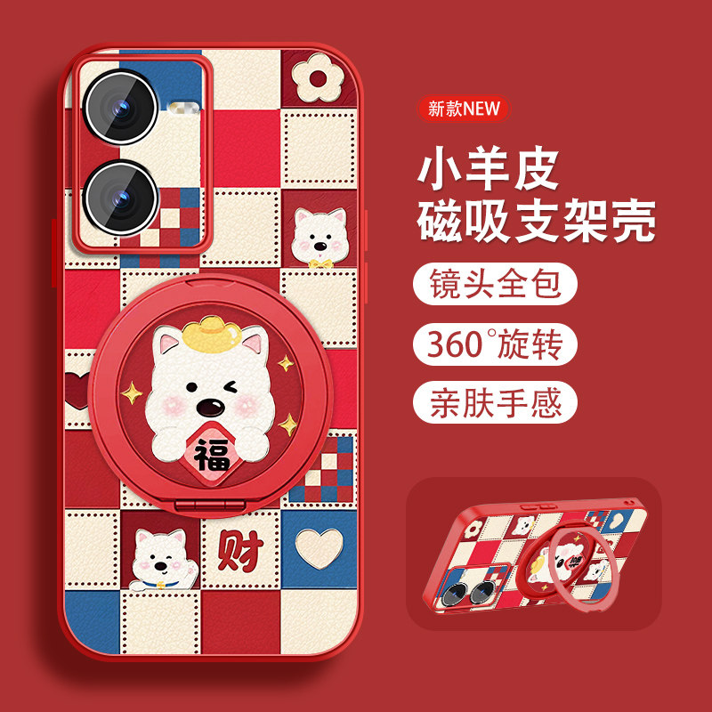 📚 适用qooz8手机壳iqooz8x新款爱酷磁吸vivoiq00z8全包旋转支架棋盘格小狗防摔vivi小羊皮硅胶套viv0女可爱外壳