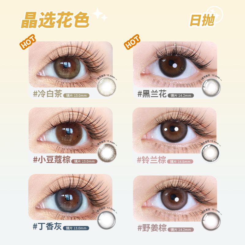 📚 晶硕美瞳日抛香水系列粉水舒适彩色隐形眼镜小大直径10片黑兰花