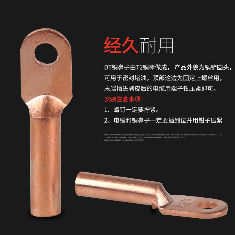 📚 铜管接线鼻子堵油电缆线铜接头DT-185mm2正国标紫铜185平方裸端子