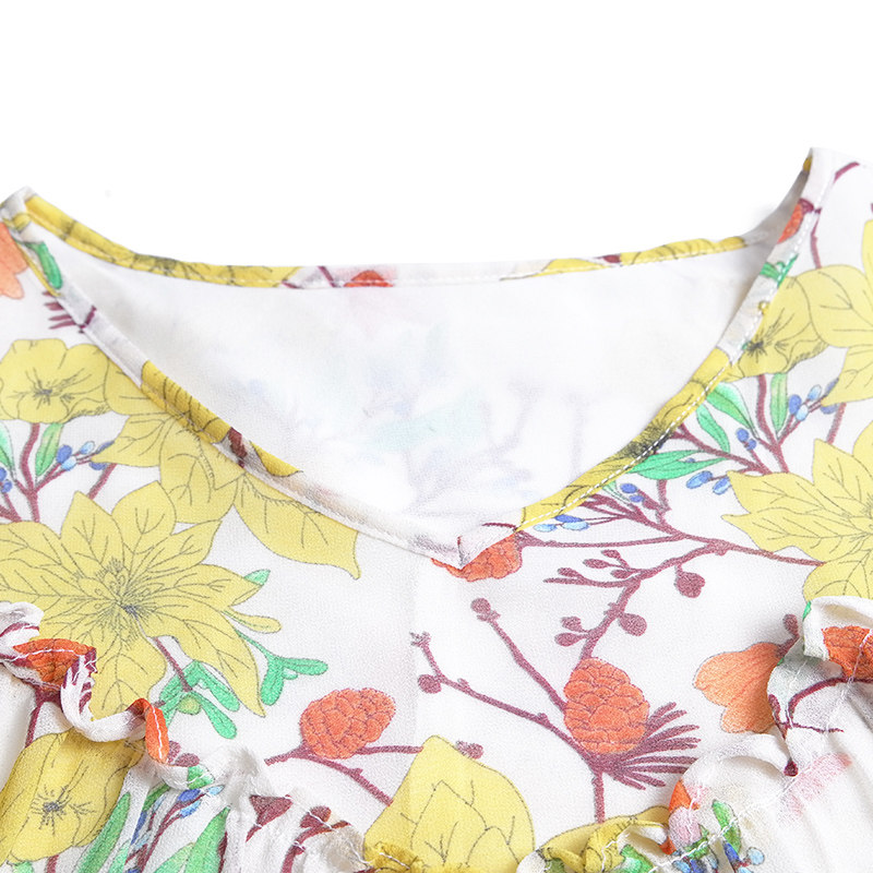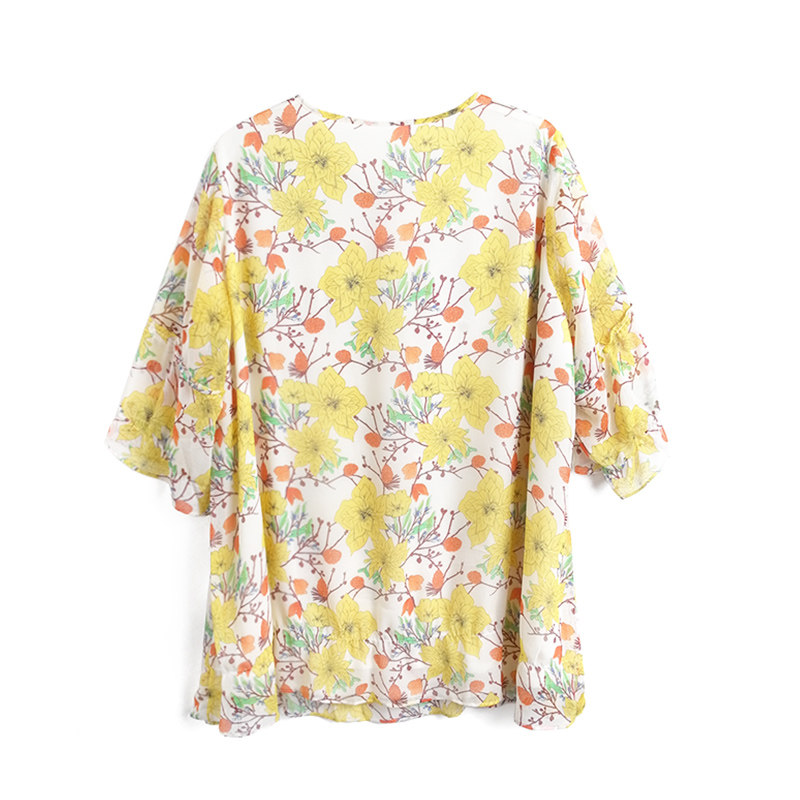 📚 胖太太大码女装夏季新款时尚碎花V领雪纺五分袖圆领上衣822215210