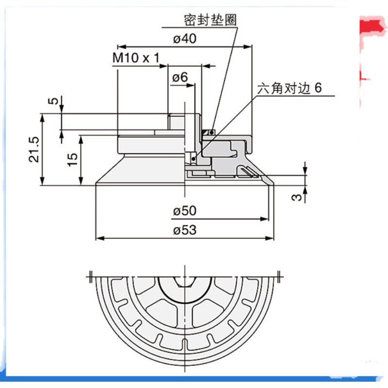 📚 工业真空吸盘ZP3E-T50UMN/S-A10SMC重载型吸盘单层防滑带沟外螺纹
