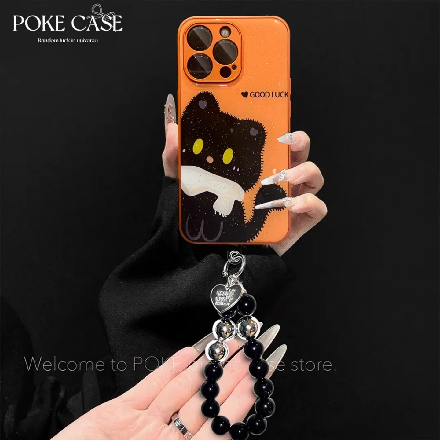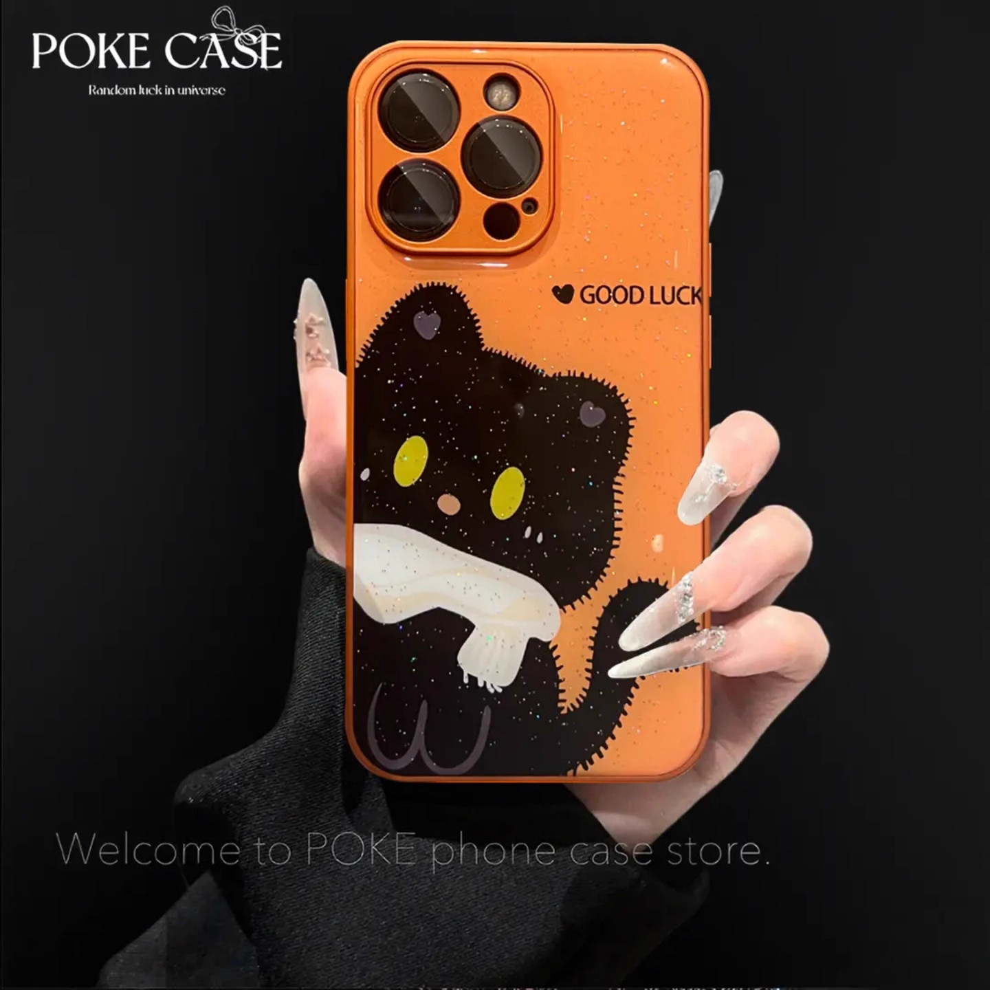 📚 可爱小猫金属漆橙色水凝壳适用苹果vivo华为荣耀oppo小米15手机壳17promax新款防摔保护套mate70女带手链外壳