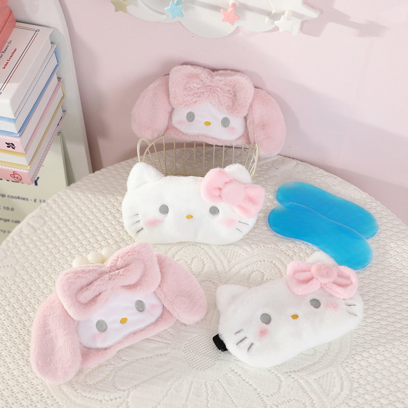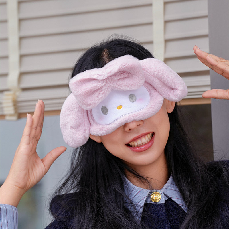 📚 可爱美乐蒂卡通大耳朵狗粉色遮光眼罩学生蝴蝶结毛绒助睡眠护眼罩