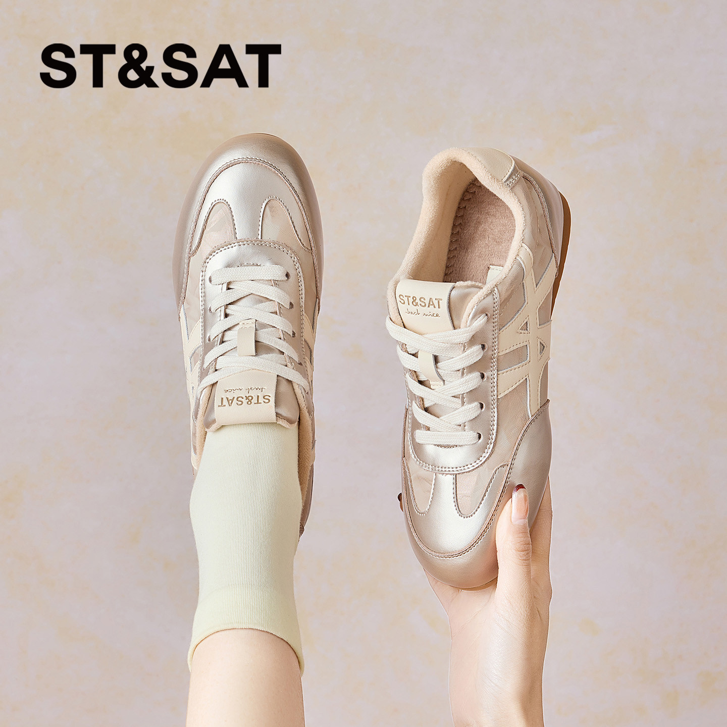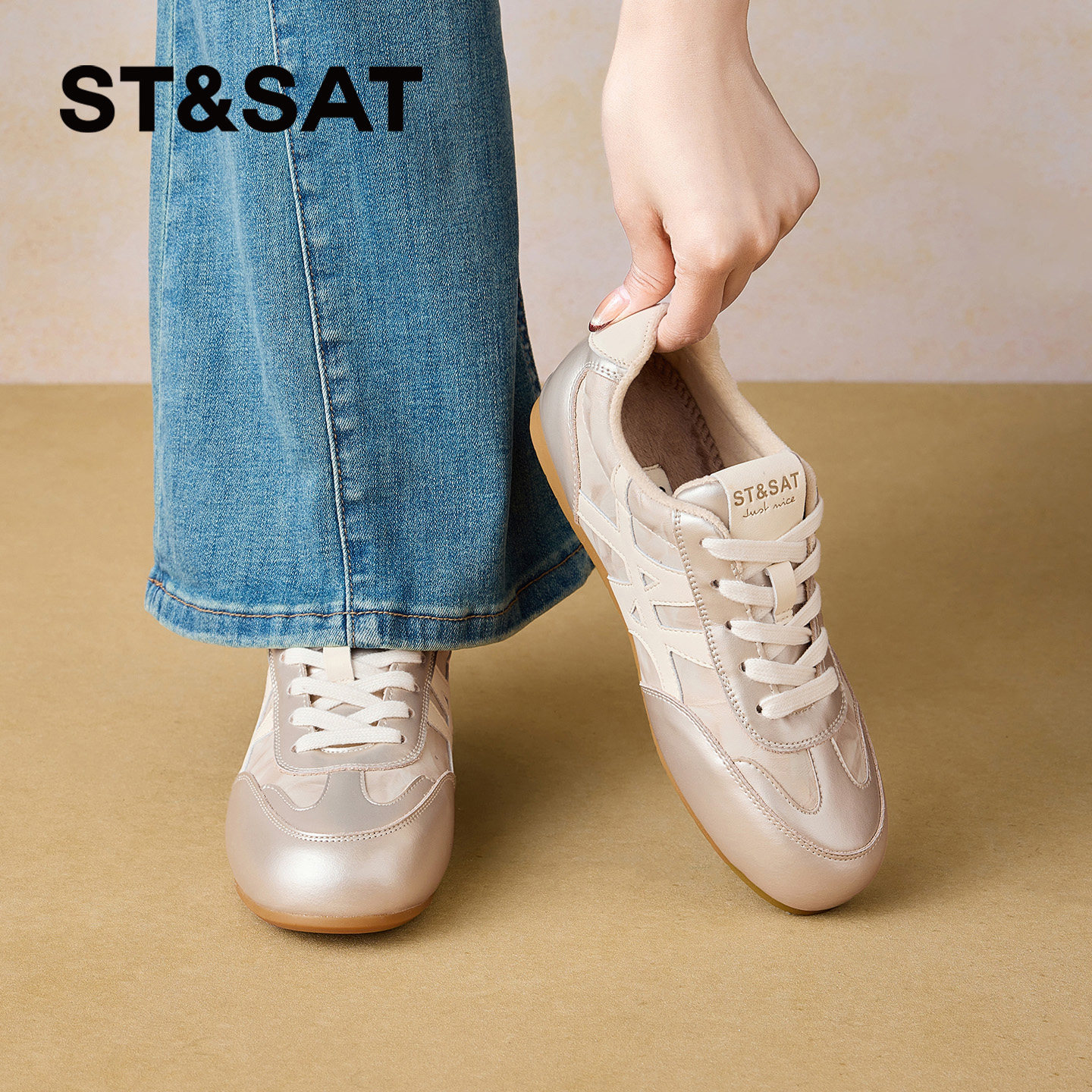 📚 星期六平底德训鞋女2025年冬季新款圆头软底香槟时尚百搭通勤板鞋