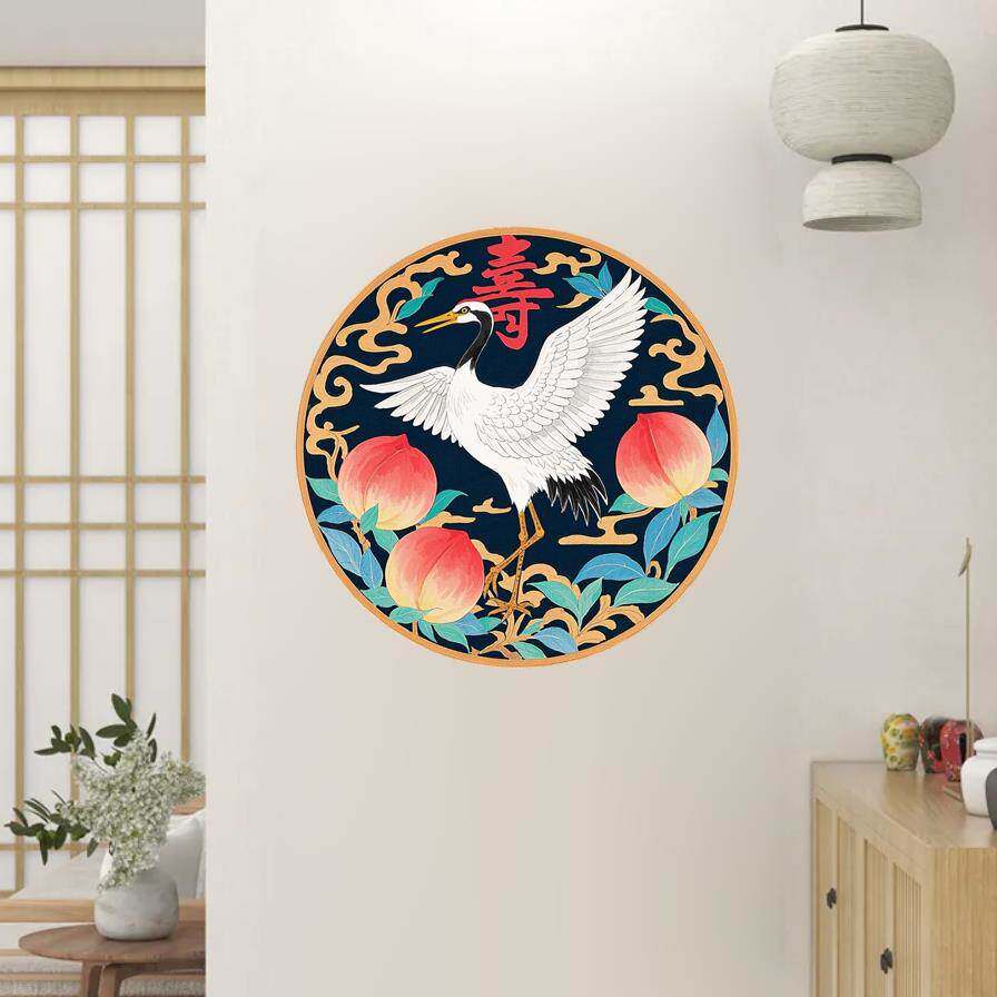 📚 仙鹤墙贴贴画圆形贴纸墙贴门贴家居出租屋爆款墙上室内网红自粘