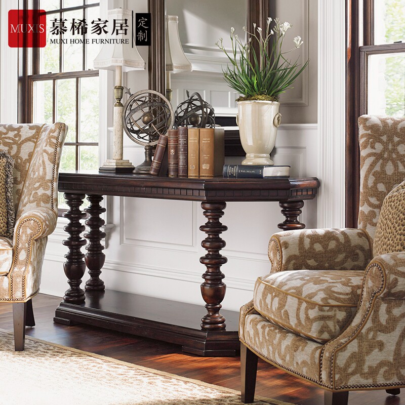 📚 莱克星顿美式实木雕刻玄关桌别墅客厅沙发桌门厅靠墙隔断柜装饰柜