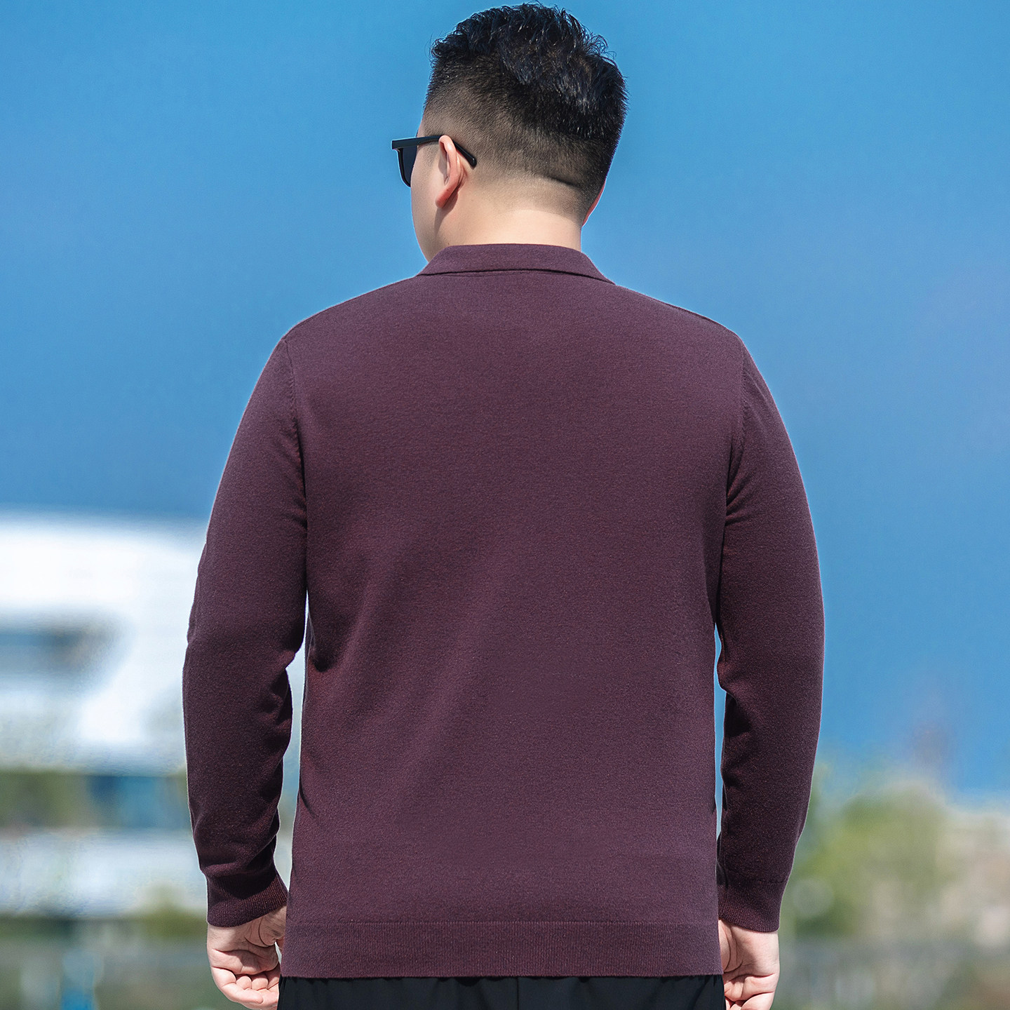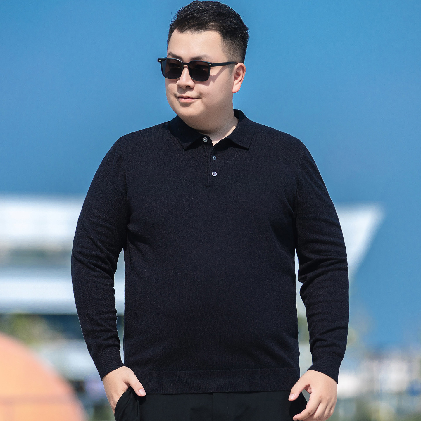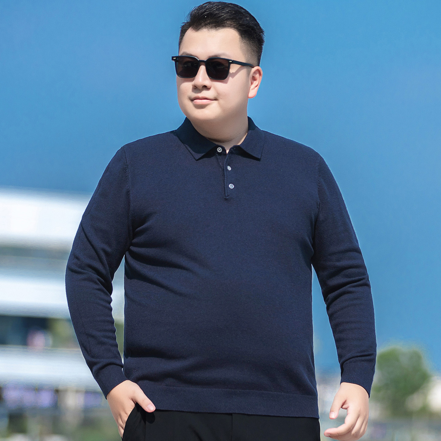 📚 时尚翻领长袖毛衣男加肥加大码秋冬季肥佬休闲羊毛混纺polo针织衫