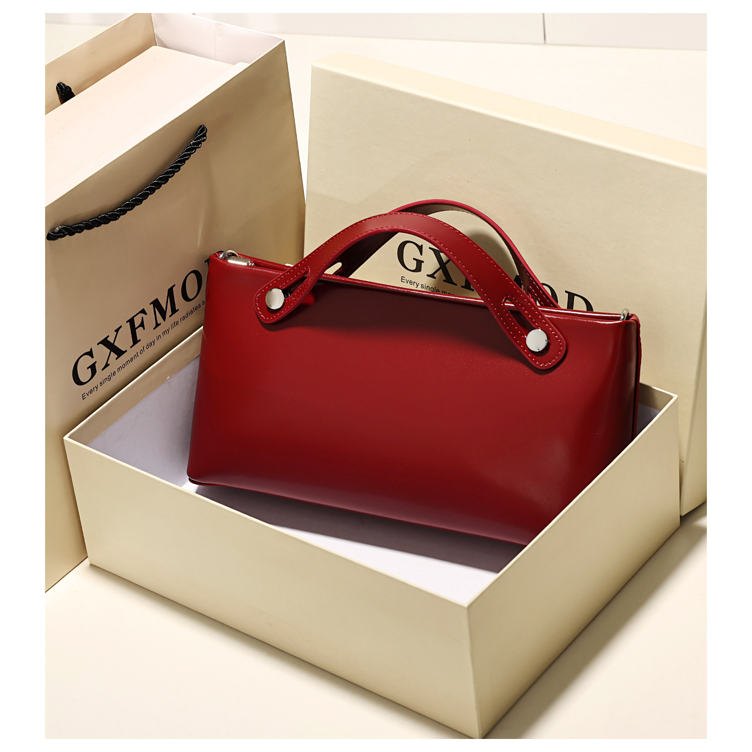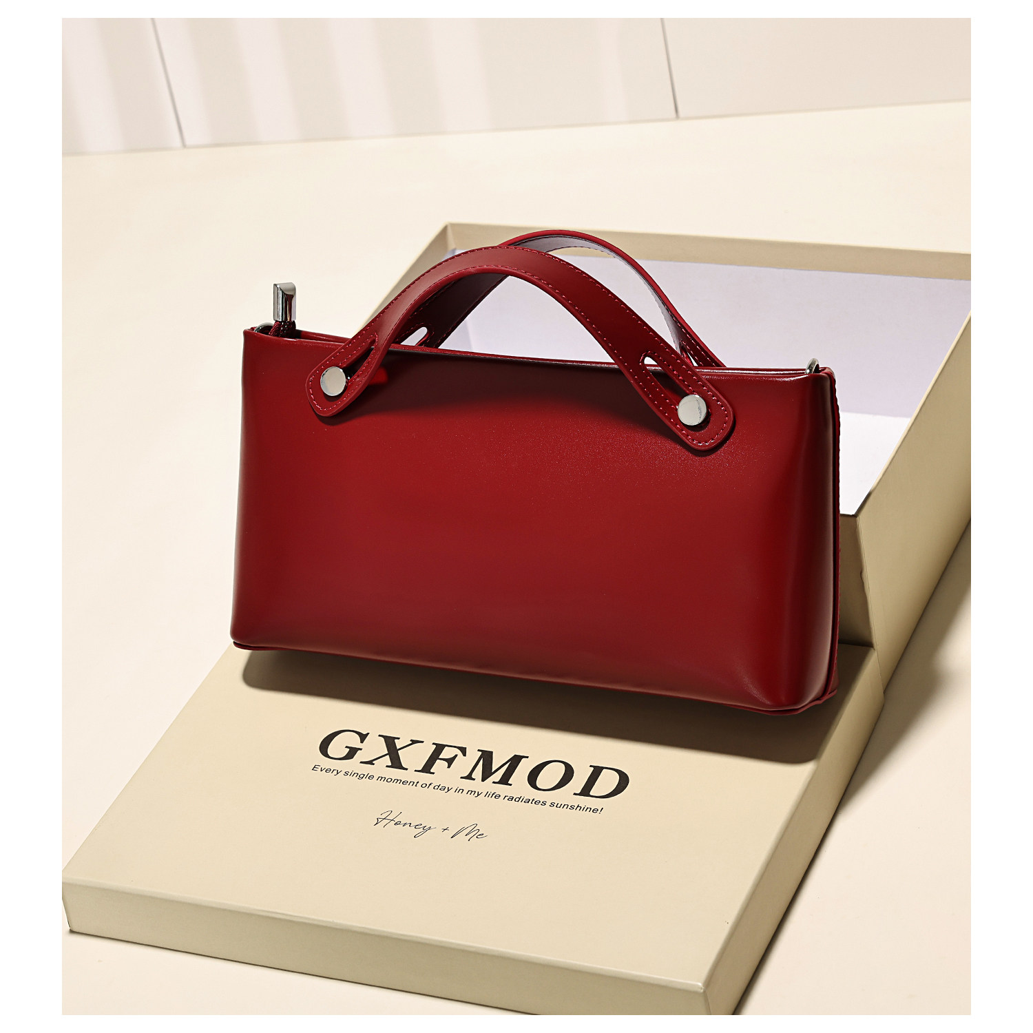 📚 GXFMOD小众品牌真皮红色手提包女2026早春新款时尚简约单肩斜挎包