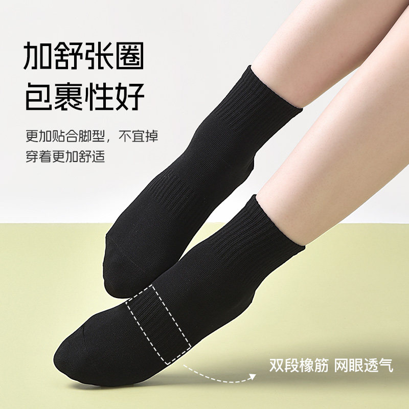 📚 洁丽雅棉感中筒袜男女短袜夏季薄款透气网眼防臭百搭高弹亲肤耐磨