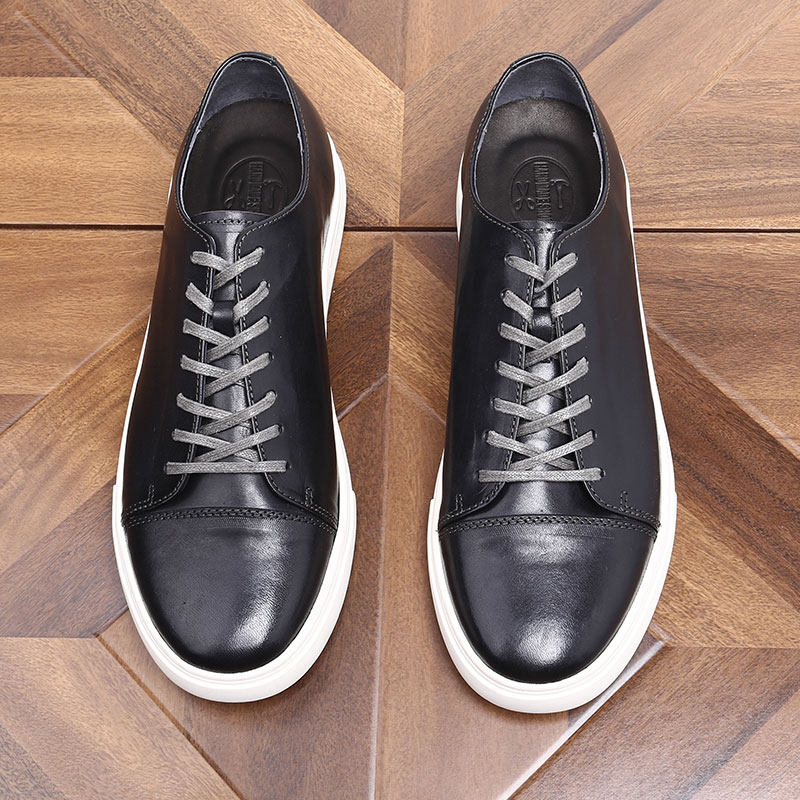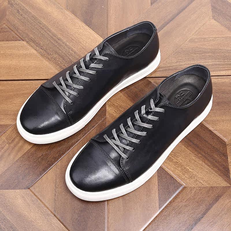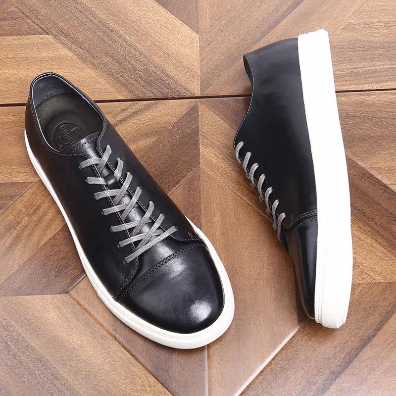 📚 英伦风真皮潮流休闲皮鞋男士韩版运动厚底板鞋马皮水洗复古休闲鞋