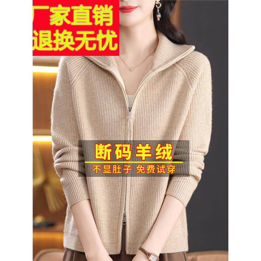 📚 嘉兴濮院市羊绒针织开衫女春秋冬红色毛衣外套双拉链外搭时尚上衣