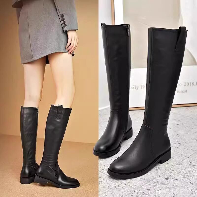 📚 品牌爆款真皮骑士靴女高筒靴2025秋冬平底加绒长靴不过膝马丁靴子