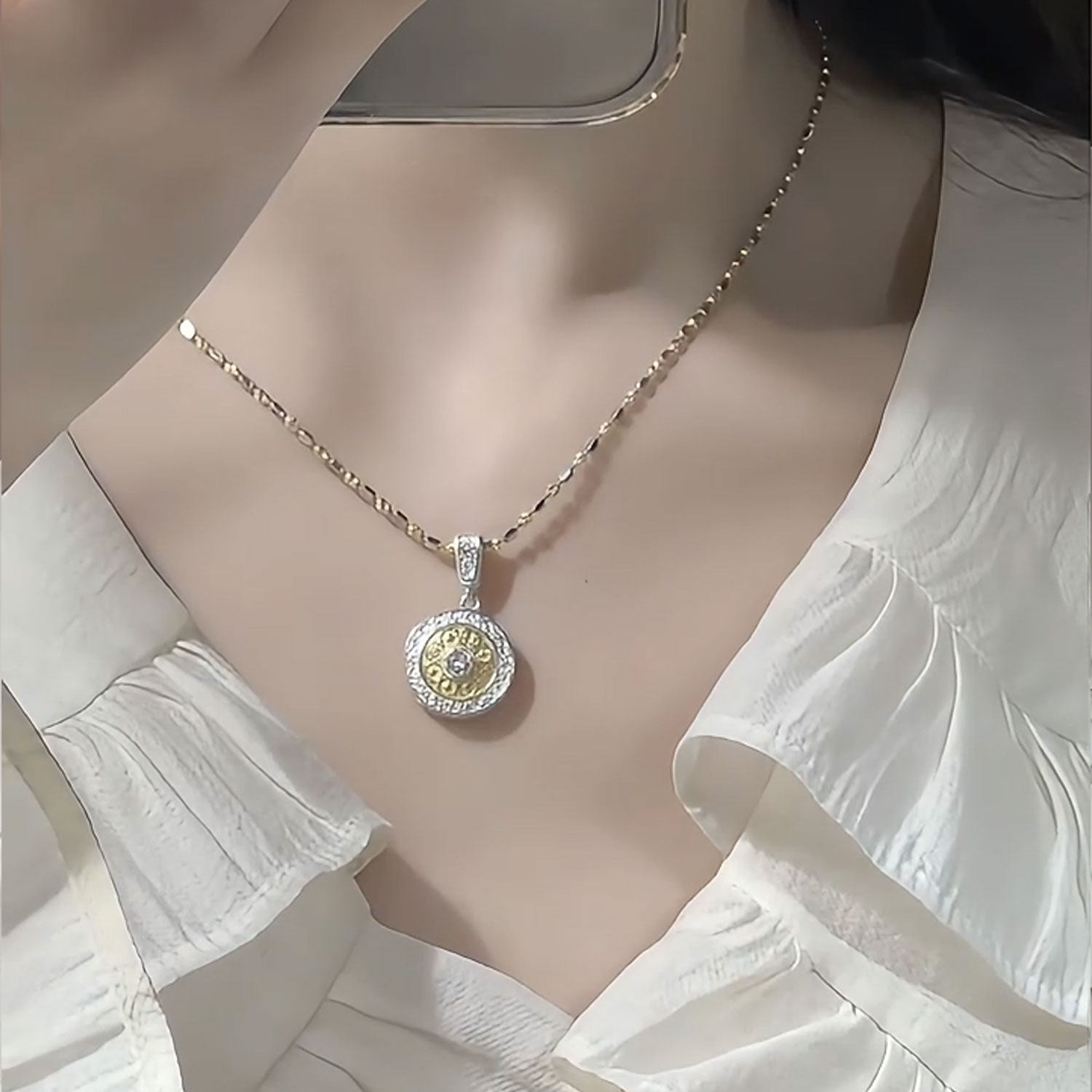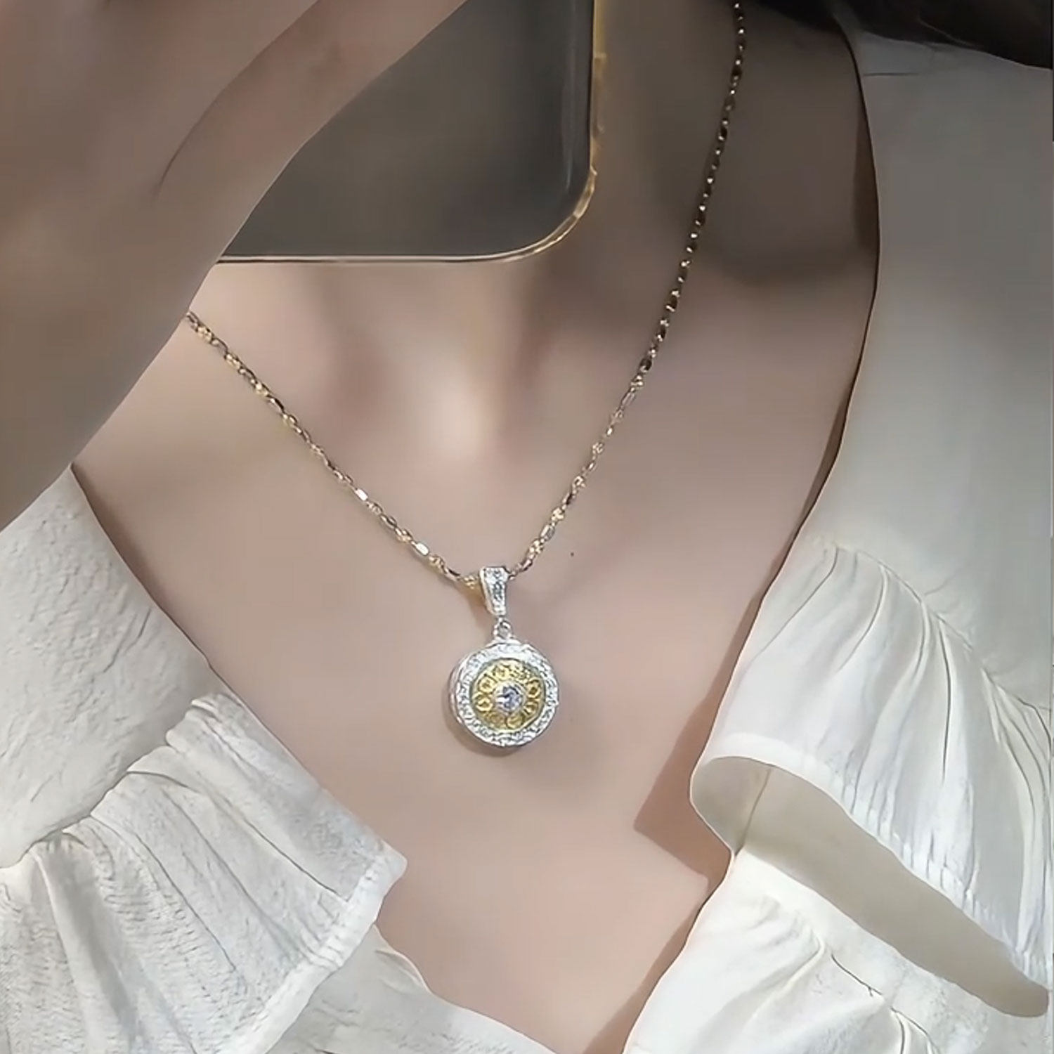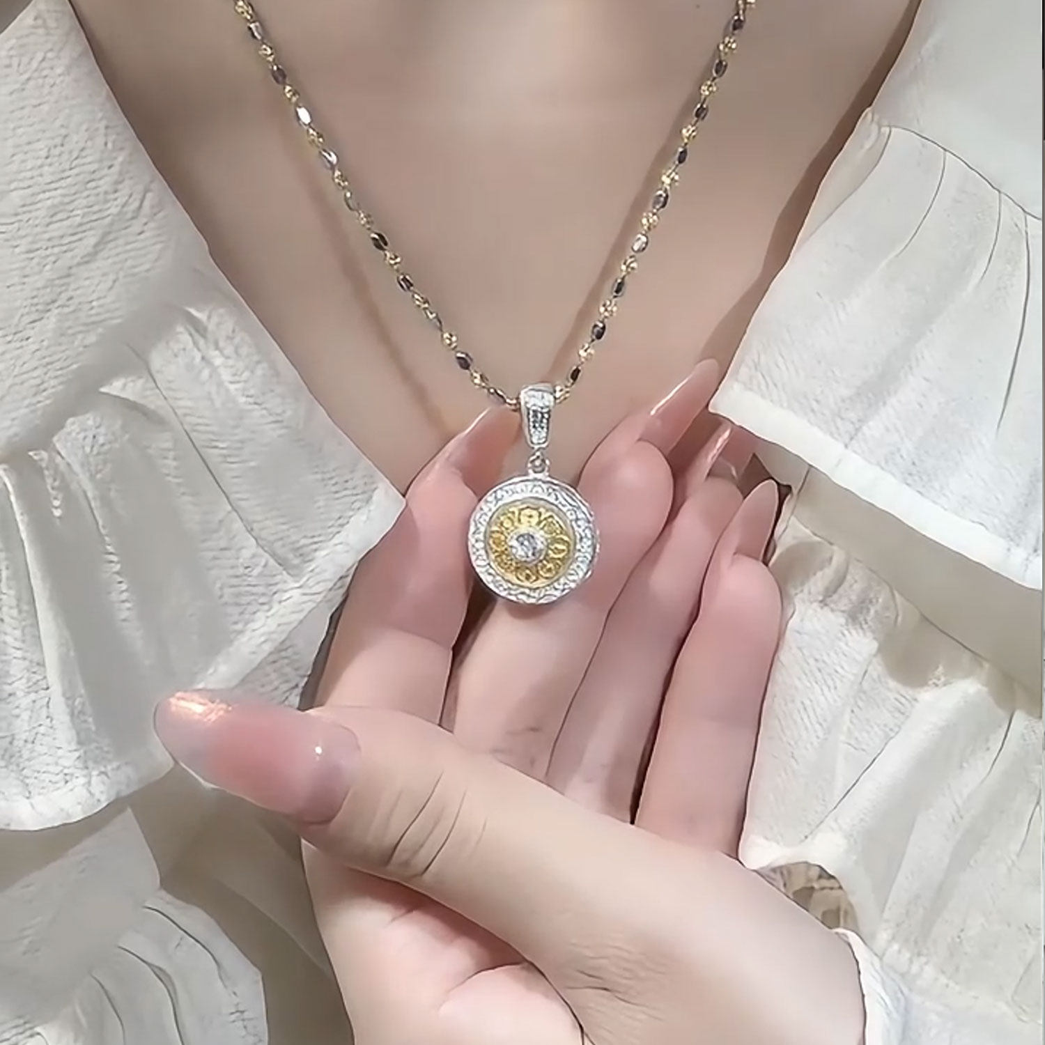 📚 925银八宝罗盘吊坠时来运转莫桑钻转运珠可转动个性百搭轻奢项坠